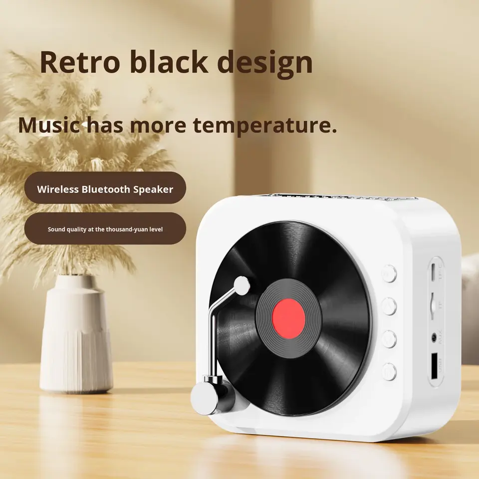 เครื่องเล่นซีดีแบบหมุนได้ สไตล์เรโทร ระบบเสียงโฮมเธียเตอร์ไร้สาย สำหรับใช้งานกลางแจ้ง ลำโพงพกพาขนาดเล็กตั้งโต๊ะ ไม่มีรีโมทคอนโทรล