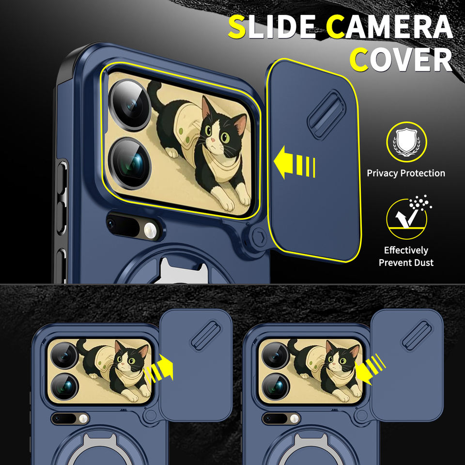 เคสขาตั้งมีห่วงหมุนได้สำหรับ Xiaomi 17 PRO MAX 15T 14T Pro ฝาปิดกล้องแบบสไลด์เคสโทรศัพท์กันกระแทกเกรด MIL