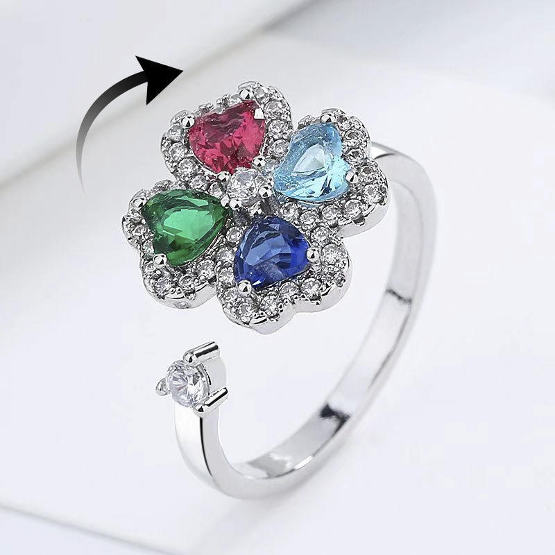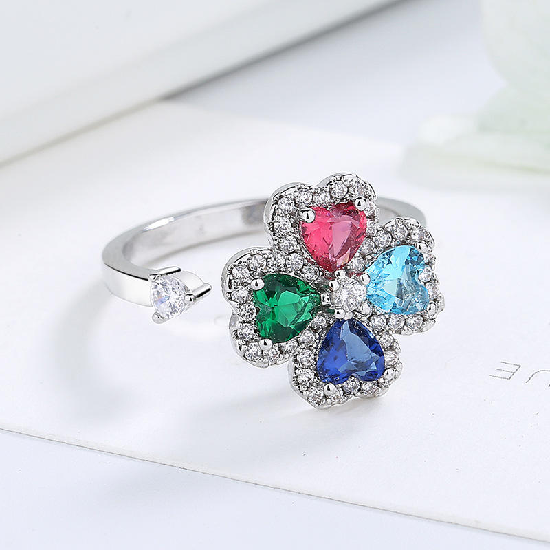 แหวนรูปใบโคลเวอร์สี่แฉกหมุนได้ ประดับเพชรซิคอนหลากสี แหวนรูปหัวใจสำหรับผู้หญิง แหวนแต่งงาน แหวนแฟชั่นสำหรับนิ้วชี้ เครื่องประดับ
