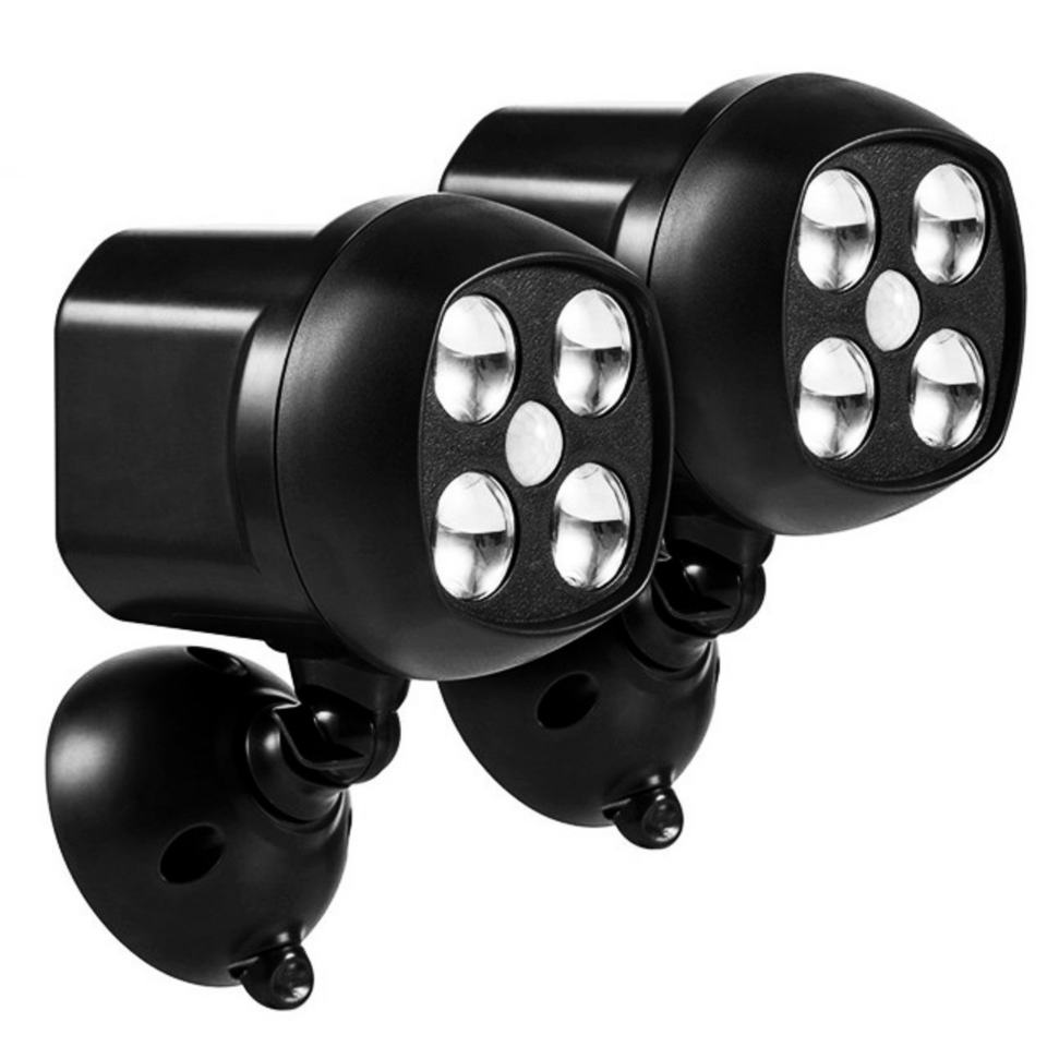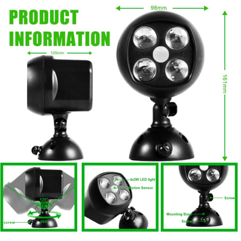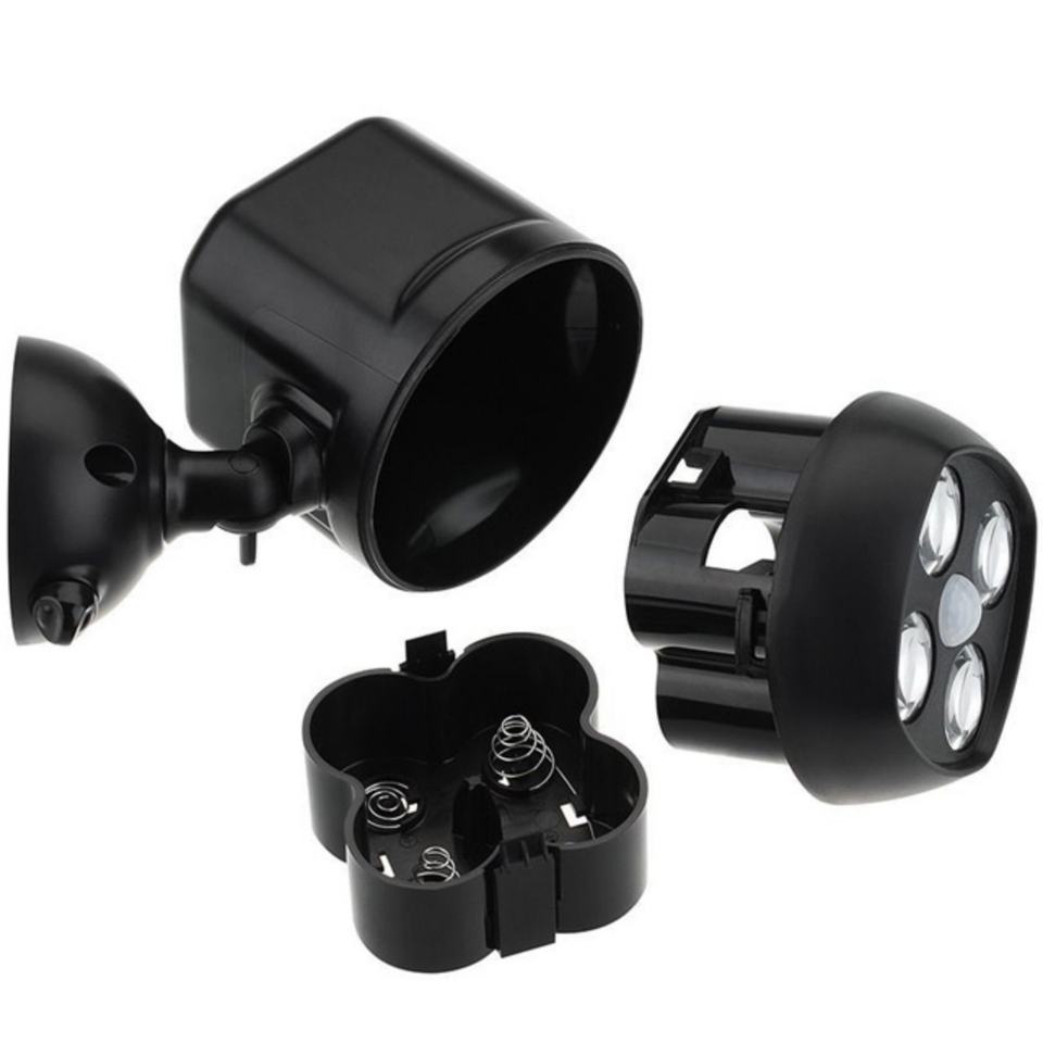 ไฟส่องสว่างแบบหมุนได้สำหรับโรงรถ ใช้แบตเตอรี่แห้ง สำหรับภายนอกอาคาร วัสดุ ABS พร้อมเซ็นเซอร์ 4LED ไร้สาย ติดผนัง IP44 ไฟสวน