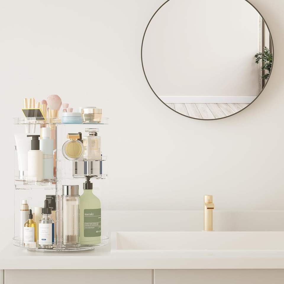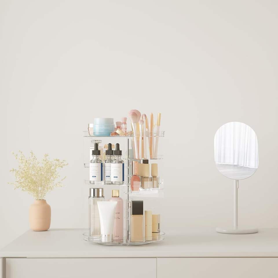 ที่จัดระเบียบเครื่องสำอางแบบหมุนได้8ชั้นอุปกรณ์จัดระเบียบดูแลผิวแบบหมุนได้อุปกรณ์จัดเก็บมัลติฟังก์ชัน