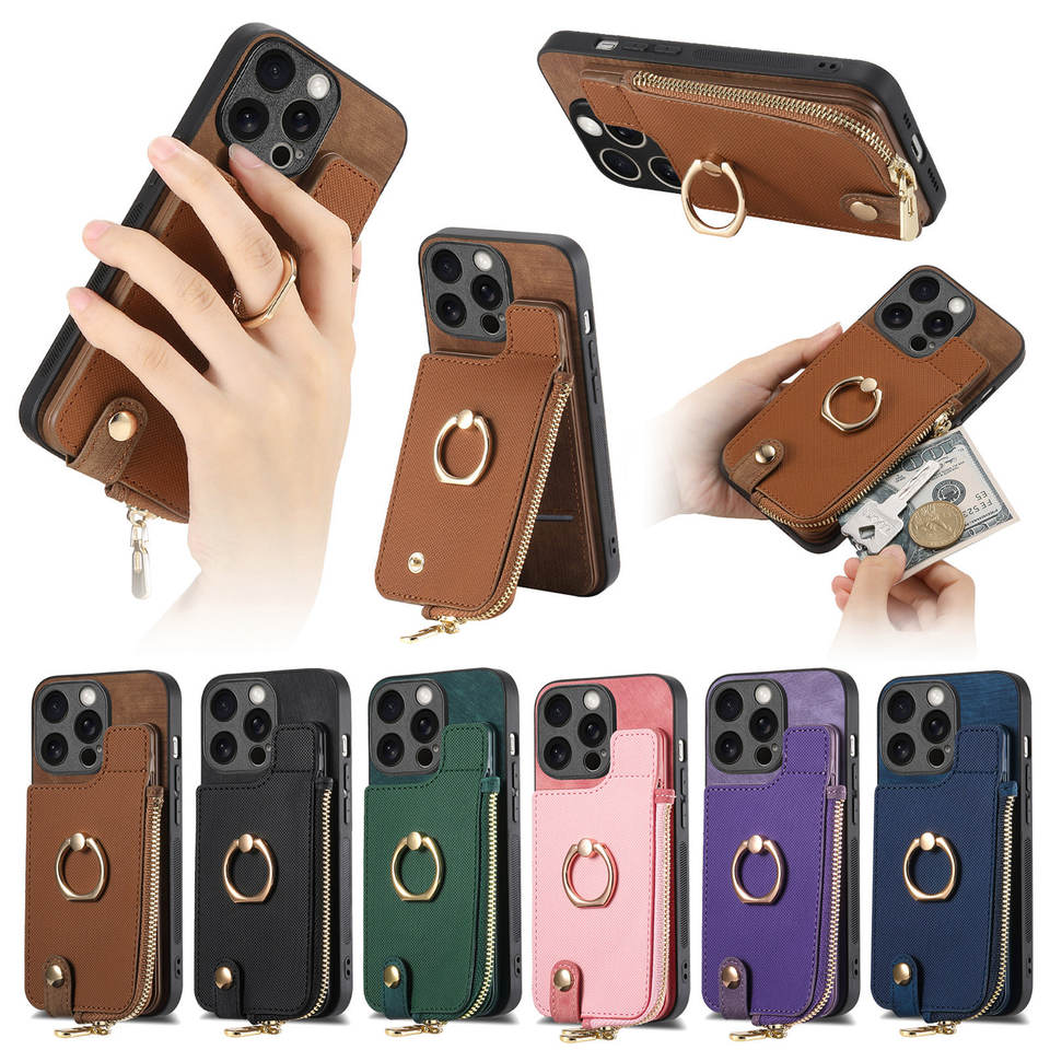 เคสโทรศัพท์มือถือแบบมีขาตั้งหมุนได้ ป้องกันแรงกระแทก วัสดุ PU พร้อมช่องใส่บัตร สำหรับ iPhone 17/16/15/14/13/12/11 ซีรีส์