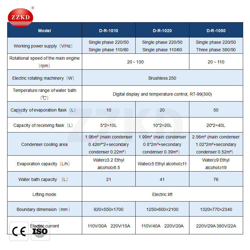 เครื่องระเหยสารแบบหมุน Rotovap 50 ลิตร แบบไฟฟ้า พร้อมระบบสุญญากาศ สำหรับห้องปฏิบัติการ มอเตอร์หลัก คอนเดนเซอร์คู่