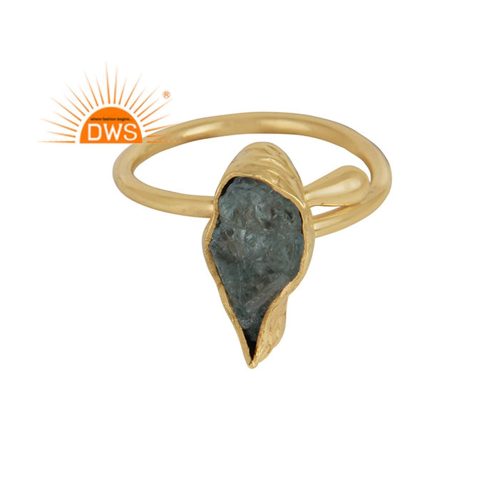 แหวนพลอยอะความารีนหยาบแหวนแฟชั่นชุบทองเหลืองแหวนทองเหลืองเครื่องประดับคอลเลกชันวินเทจ