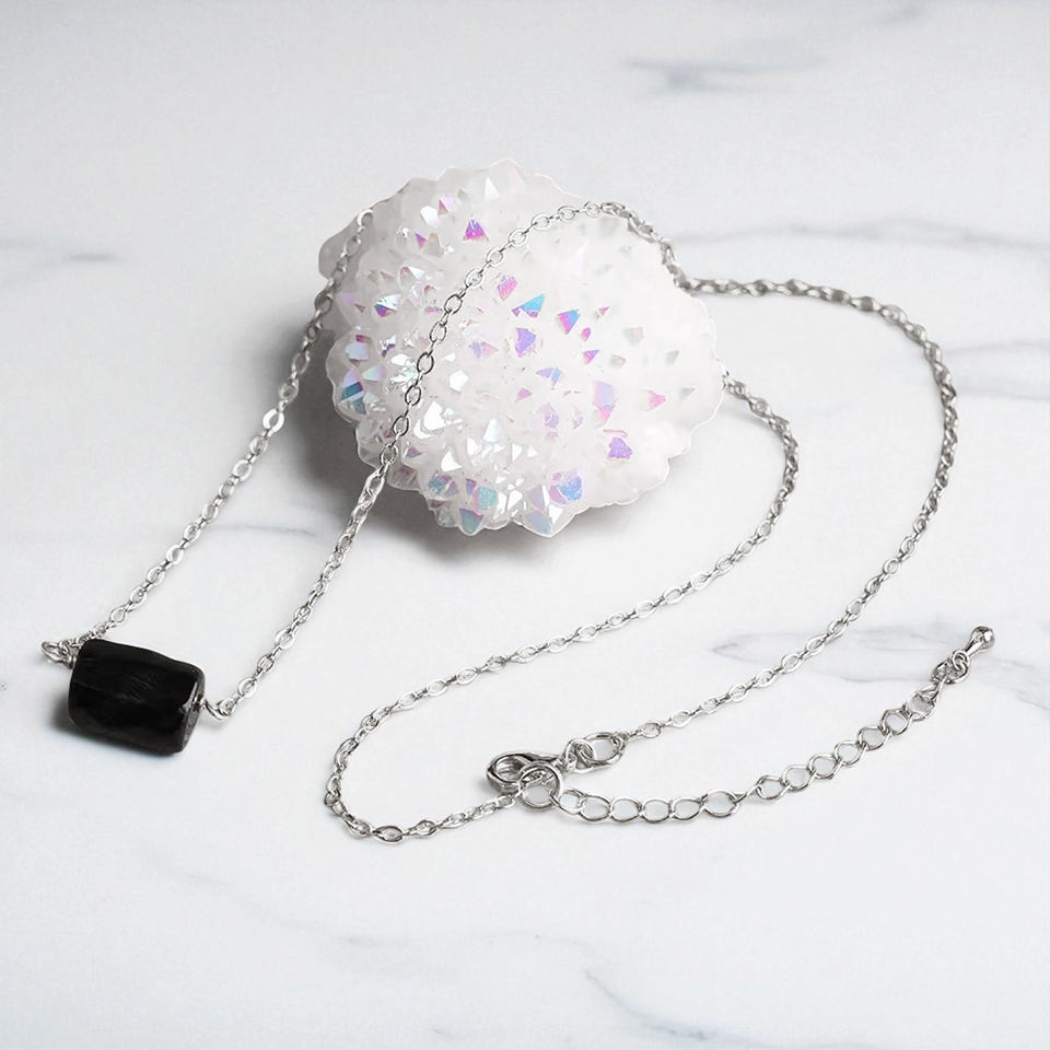 กำไลข้อมือพลอยทัวร์มาลีนสีดำหยาบ925สายโซ่เงินสเตอร์ลิงสร้อยคอแบบปรับได้เครื่องประดับโลโก้ได้ตามต้องการ