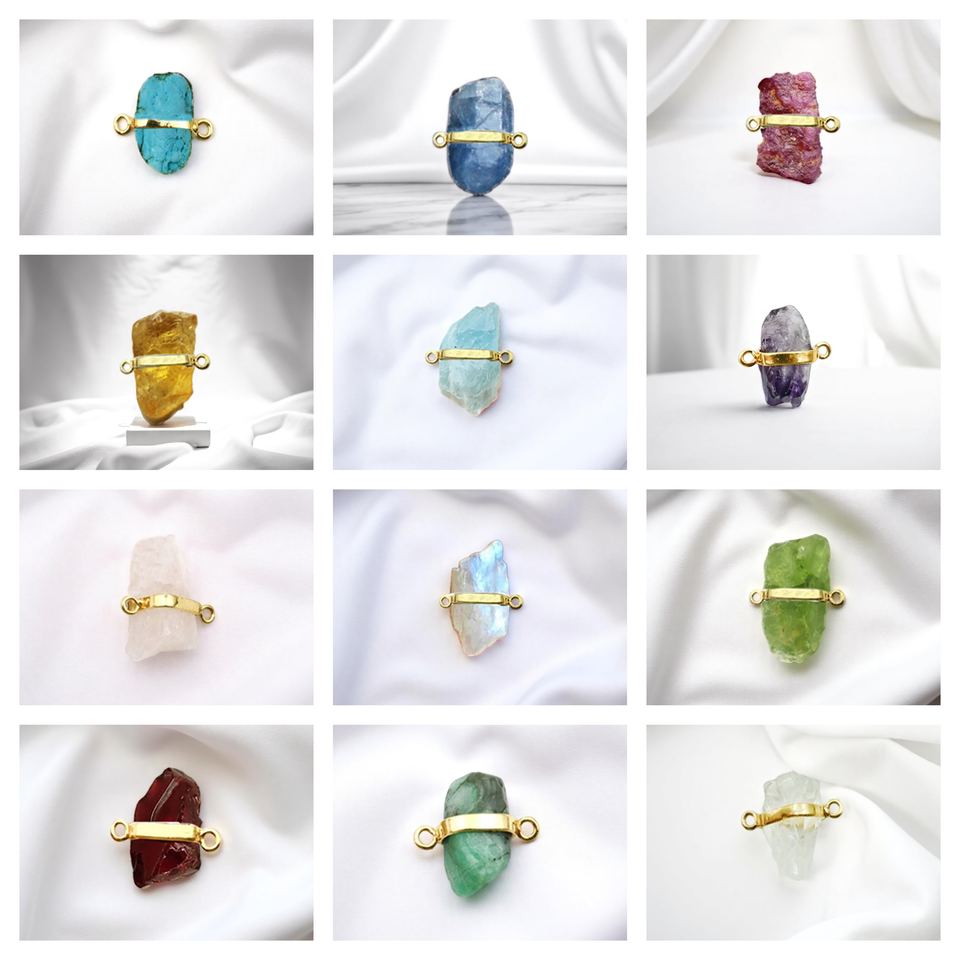 พลอยโกเมนแบบหยาบเชื่อมต่อเครื่องประดับ DIY สร้อยคอพลอยตัวเชื่อมต่อแบบดิบ12-14มม.