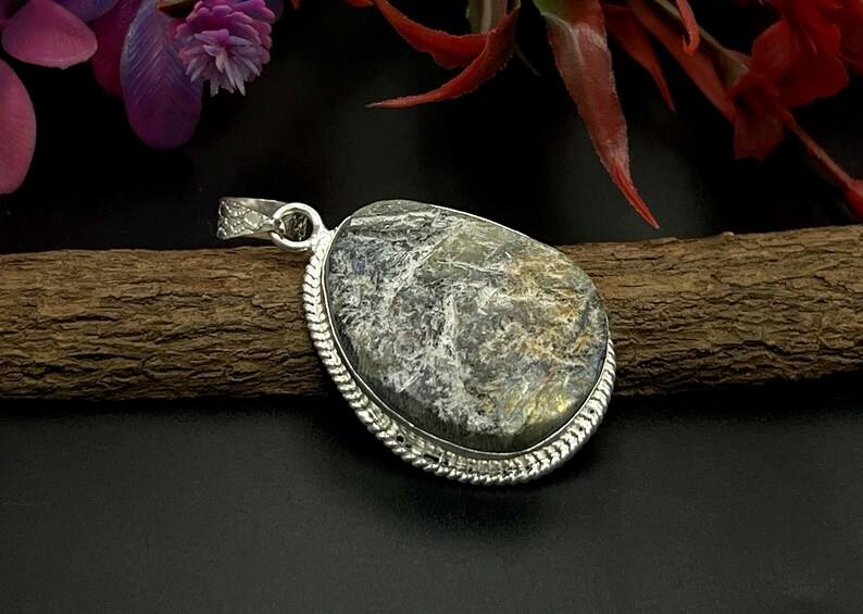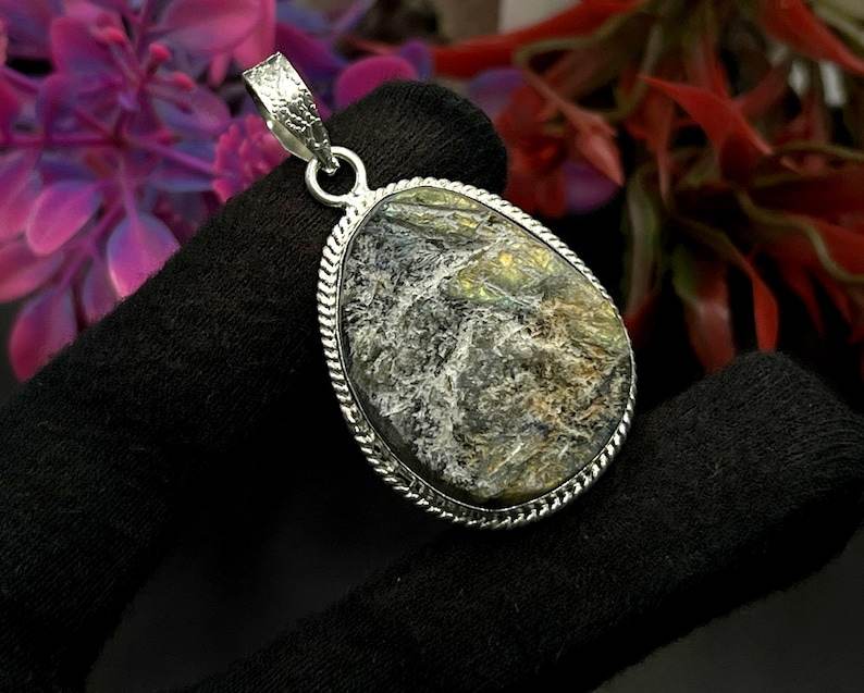จี้หินลาบราดอไรต์เคลือบทองวินเทจ งานแฮนด์เมด เครื่องประดับเงินแท้ สร้อยคอเพื่อสุขภาพ ของขวัญวันเกิดสุดพิเศษ