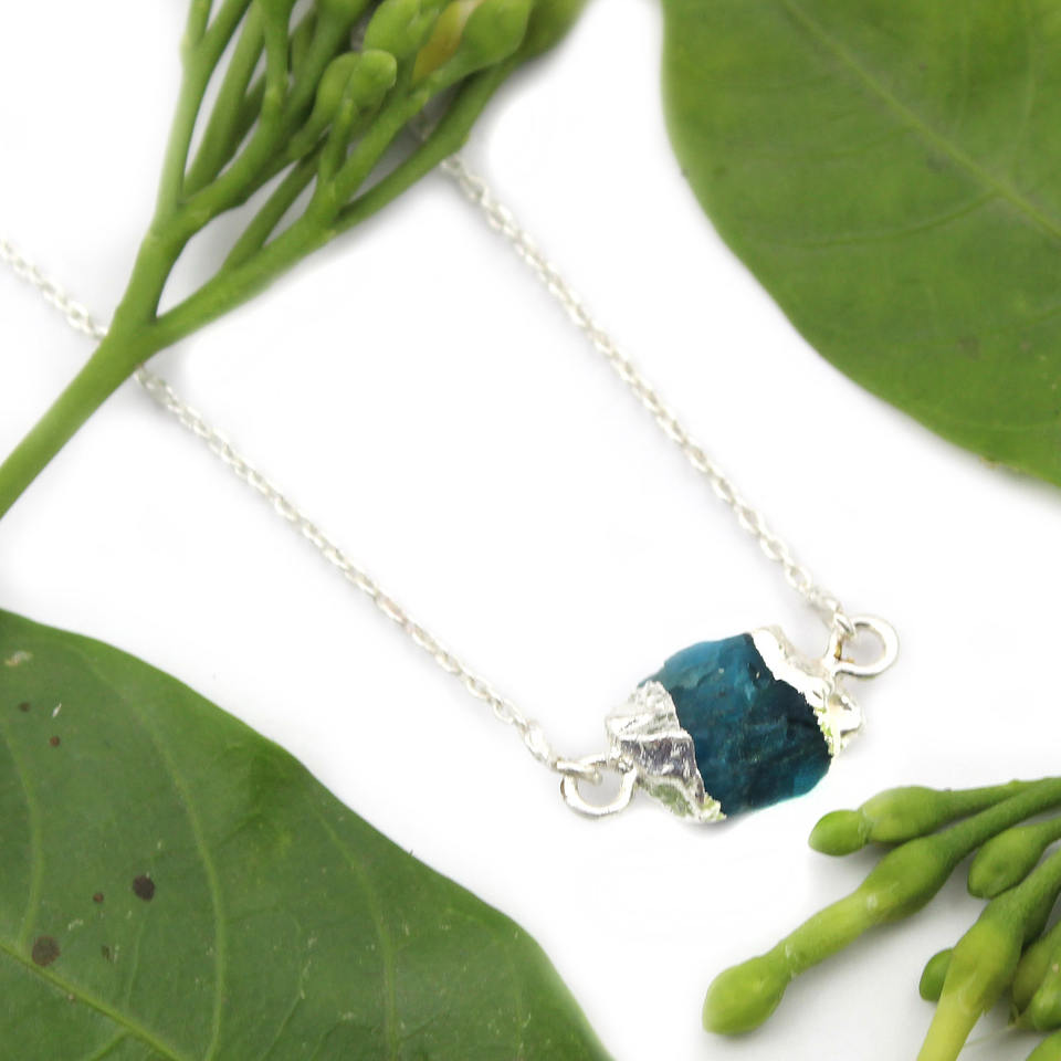 สร้อยคอจี้อะพาไทต์นีออนหยาบสร้อยคอจี้ชุบเงินน้อยเรียบง่ายเครื่องประดับที่สง่างามสวมใส่ทุกวันขายส่งเครื่องประดับ