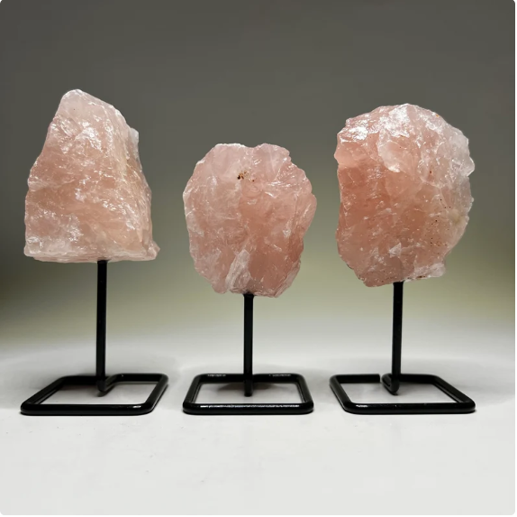 คริสตัลควอตซ์รูปกุหลาบดิบบนขาตั้ง