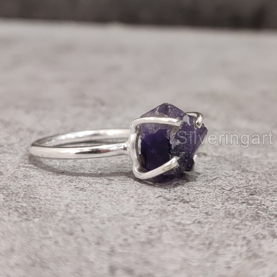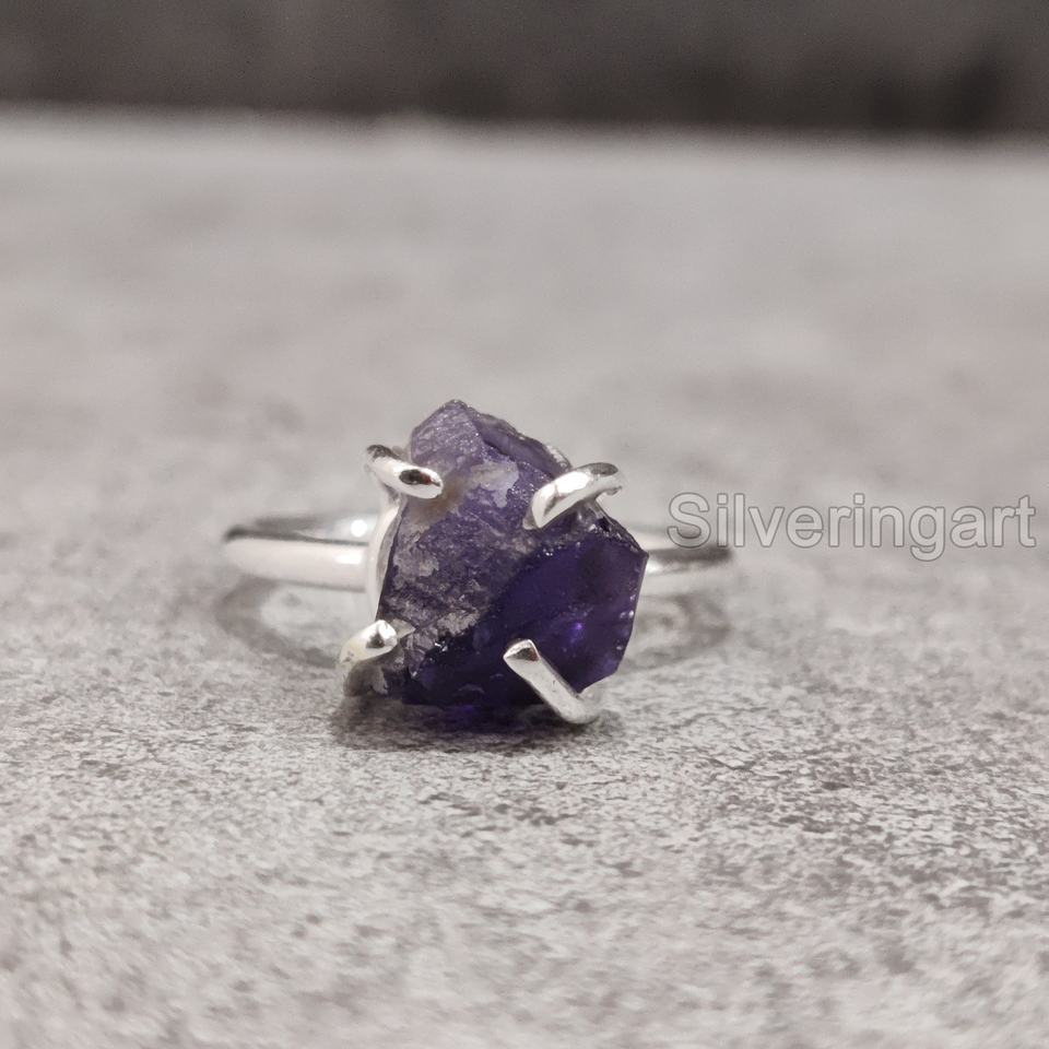 เครื่องประดับหินหยาบสำหรับผู้หญิงแหวนพลอยอเมทิสต์พลอยอเมทิสต์พลอยสังเคราะห์อัญมณีสายง่ามสำหรับ925เครื่องประดับแหวนเงินสเตอร์ลิง