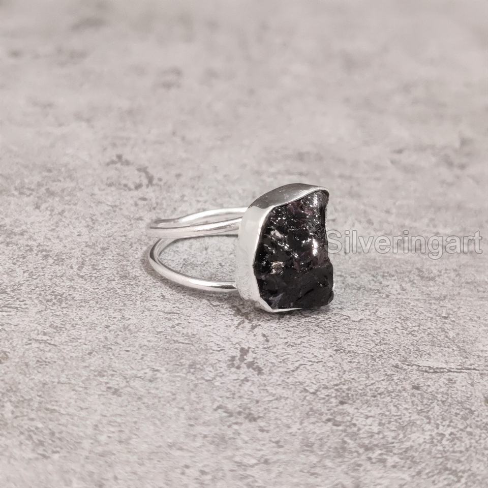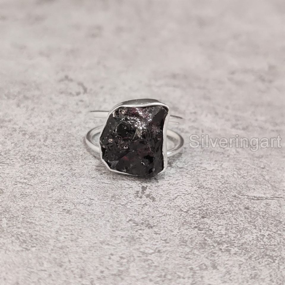 เครื่องประดับหินหยาบแหวนโกเมนธรรมชาติสำหรับผู้หญิงพลอยโกเมนแบบดิบ janawary birthstone PARTY Dual Band เครื่องประดับ925แหวนเงินสเตอร์ลิง