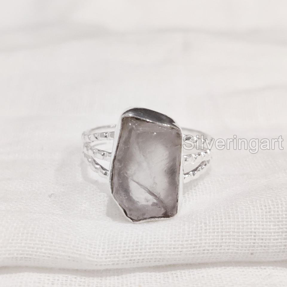 เครื่องประดับหินหยาบแหวนสตรีแหวนเงินแท้กุหลาบควอตซ์พลอย April พลอย925ตะวันออก3หยัก