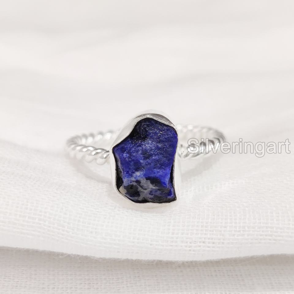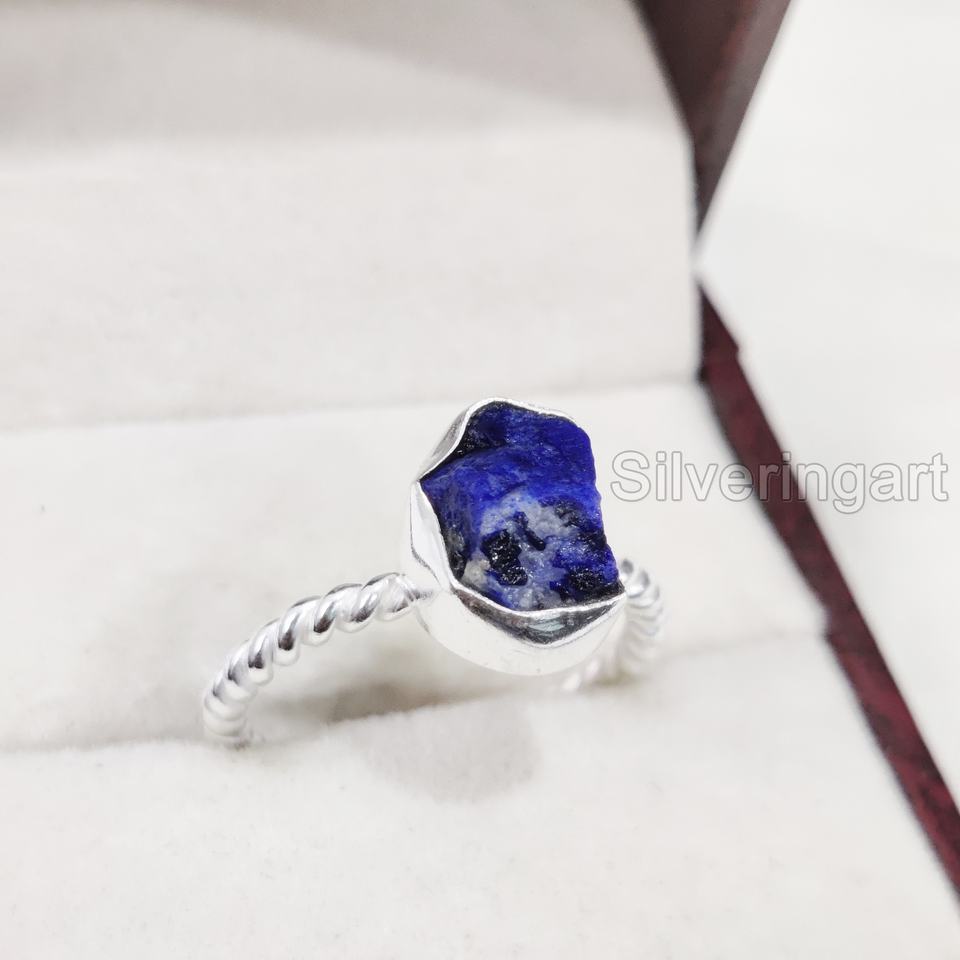 แหวนเงินแท้ 925 ประดับพลอยลาพิส ลาซูลีดิบธรรมชาติ ดีไซน์เกลียวลวด สำหรับผู้หญิง เหมาะสำหรับงานแต่งงาน คริสต์มาส