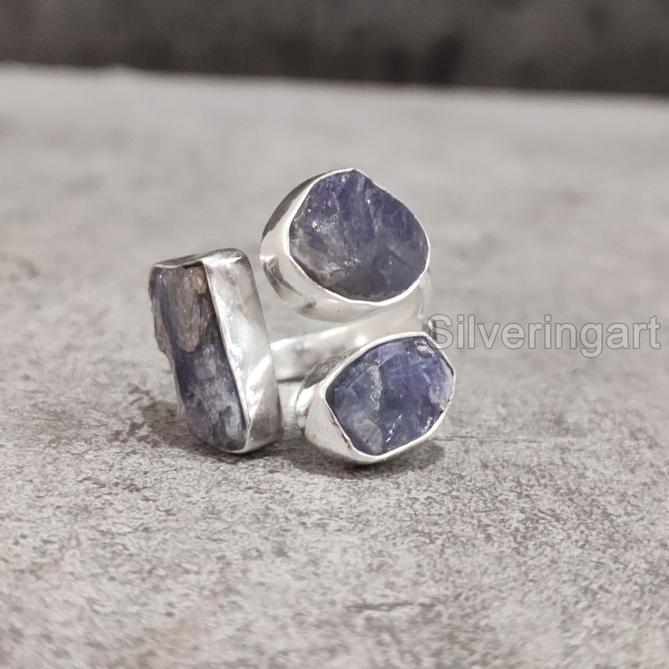 แหวนเงินแท้ 925 ประดับพลอยแทนซาไนต์ธรรมชาติ ปรับขนาดได้ สำหรับผู้หญิง ดีไซน์สามเม็ด พลอยประจำเดือนธันวาคม