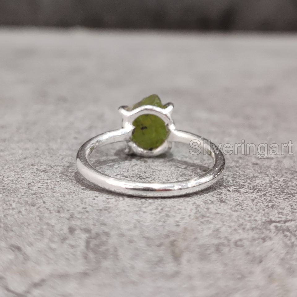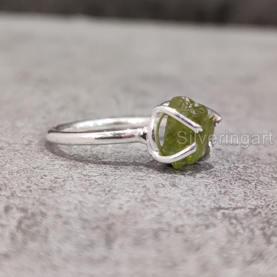 เครื่องประดับหินหยาบแหวนสตรีอัญมณีเพอริโดแบบธรรมชาติวงแหวนง่ามสำหรับวันครบรอบวันเกิดวงแหวนเงินสเตอร์ลิง925
