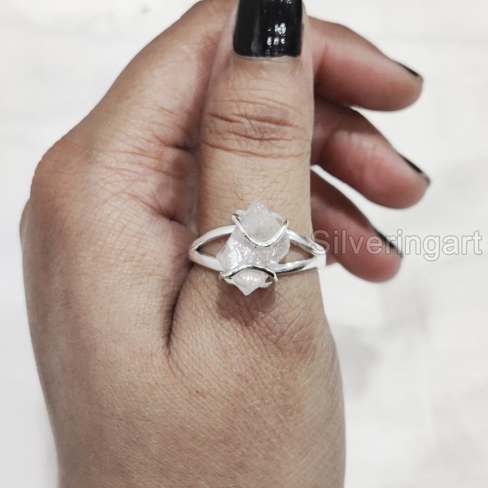เครื่องประดับหินหยาบแหวนสำหรับผู้หญิงแหวนสำหรับผู้หญิงทำจากแร่ควอตซ์พลอยธรรมชาติยี่ห้อ April สายเพชรดีไซน์เนอร์สาย925แหวนเงินสเตอร์ลิง