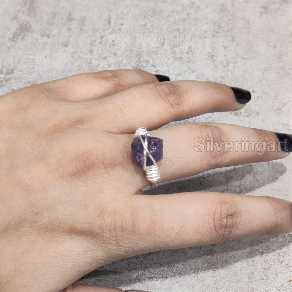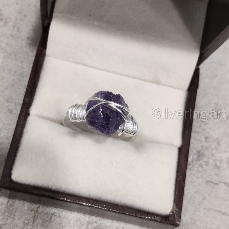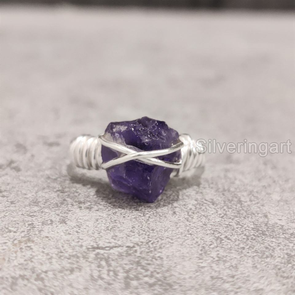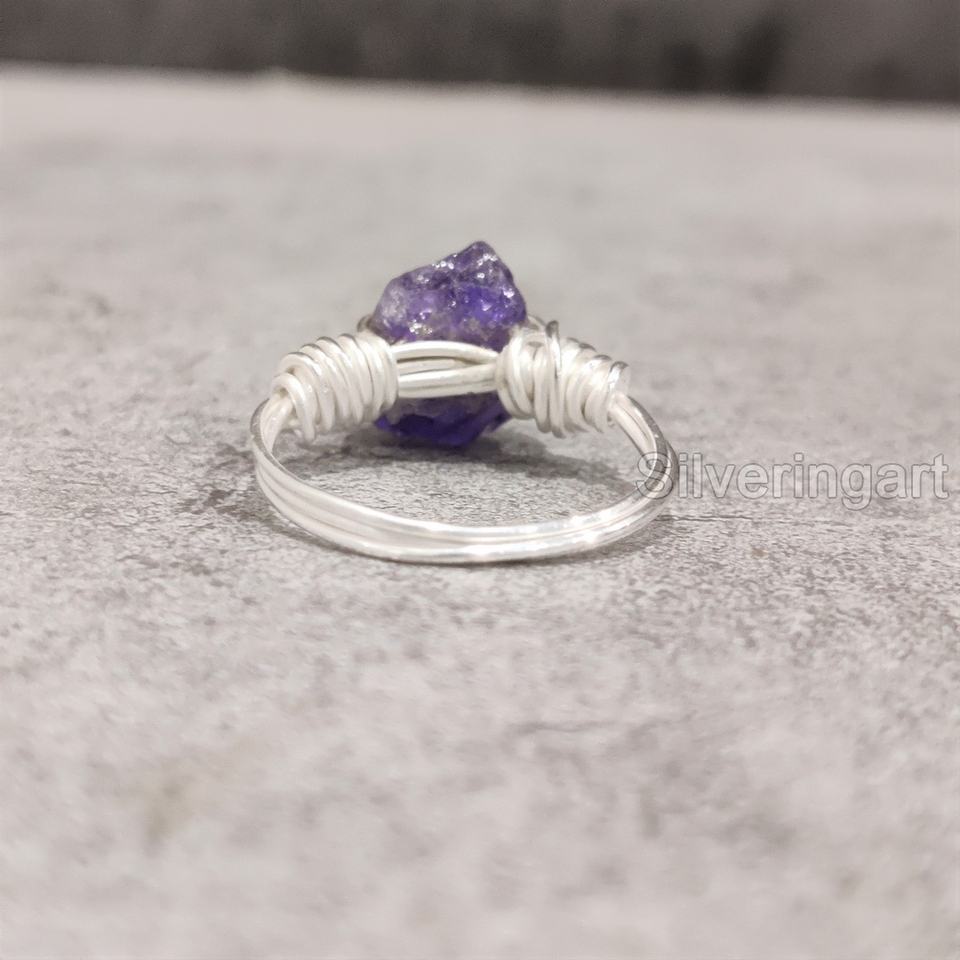 เครื่องประดับหินหยาบสำหรับผู้หญิงแหวนพลอยอเมทิสต์ธรรมชาติพลอยอเมทิสสายรัดสำหรับ925คริสต์มาสแหวนเงินสเตอร์ลิง