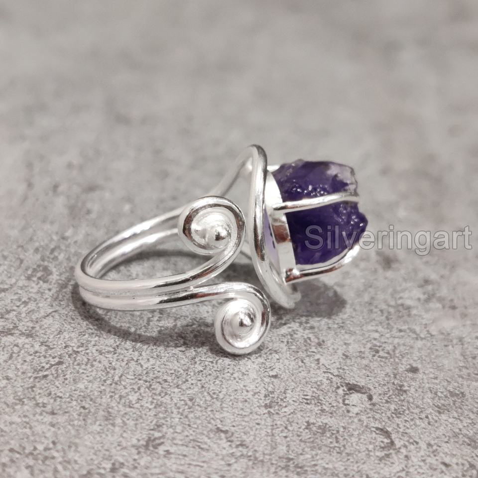 เครื่องประดับหินหยาบสำหรับผู้หญิงแหวนพลอยอเมทิสต์ธรรมชาติพลอยสังเคราะห์ทองของดีไซเนอร์พลอย925แต่งงานแหวนเงินสเตอร์ลิง