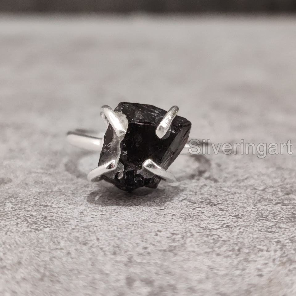 เครื่องประดับหินหยาบแหวนโกเมนธรรมชาติสำหรับผู้หญิงพลอยโกเมนแบบดิบกำเนิดพลอย925คริสต์มาสแหวนเงินสเตอร์ลิง