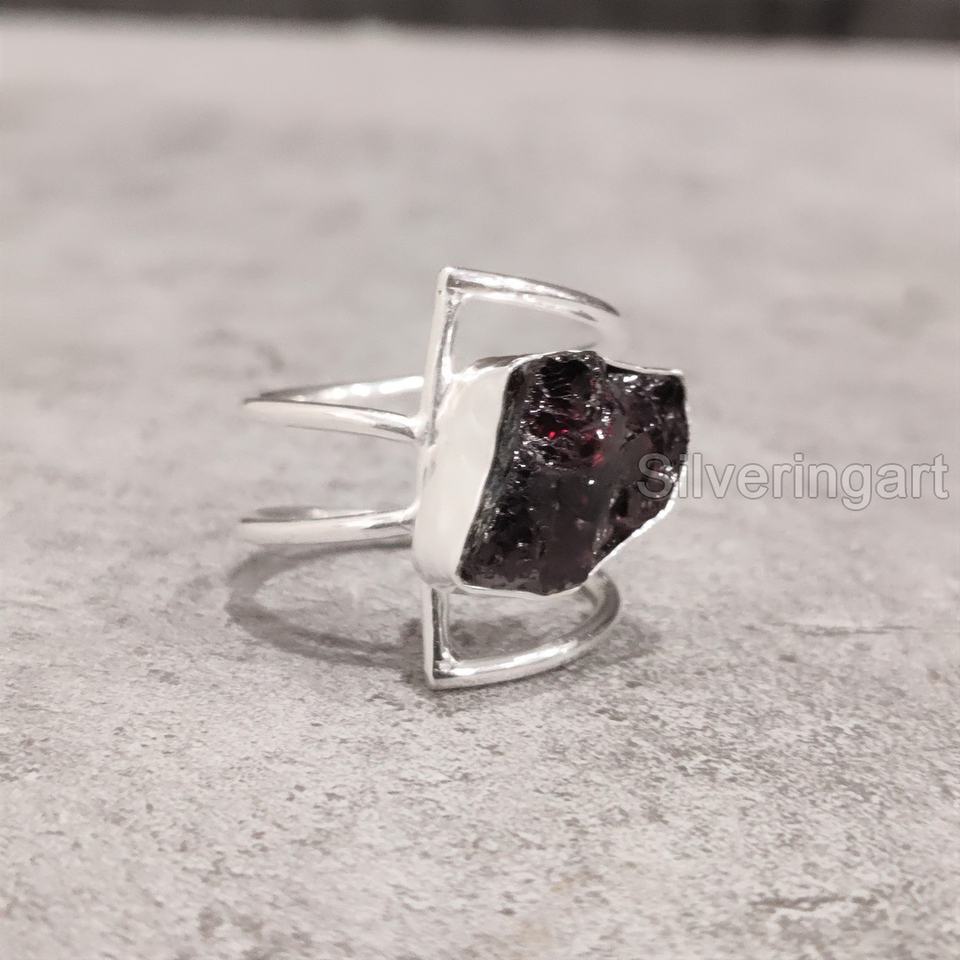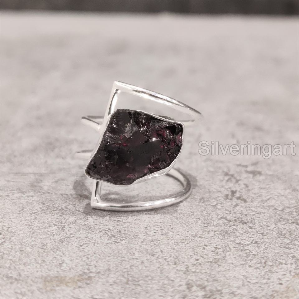 เครื่องประดับหินหยาบแหวนโกเมนธรรมชาติสำหรับผู้หญิงพลอยโกเมนแบบดิบ janawary birthstone PARTY Dual Band เครื่องประดับ925แหวนเงินสเตอร์ลิง