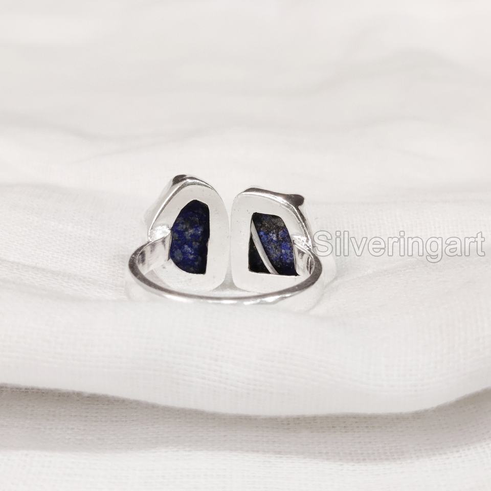 แหวนเงินแท้ 925 ประดับพลอยลาพิส ลาซูลีดิบธรรมชาติ สำหรับผู้หญิง ดีไซน์หินคู่ ปรับขนาดได้ เหมาะสำหรับเทศกาลคริสต์มาส