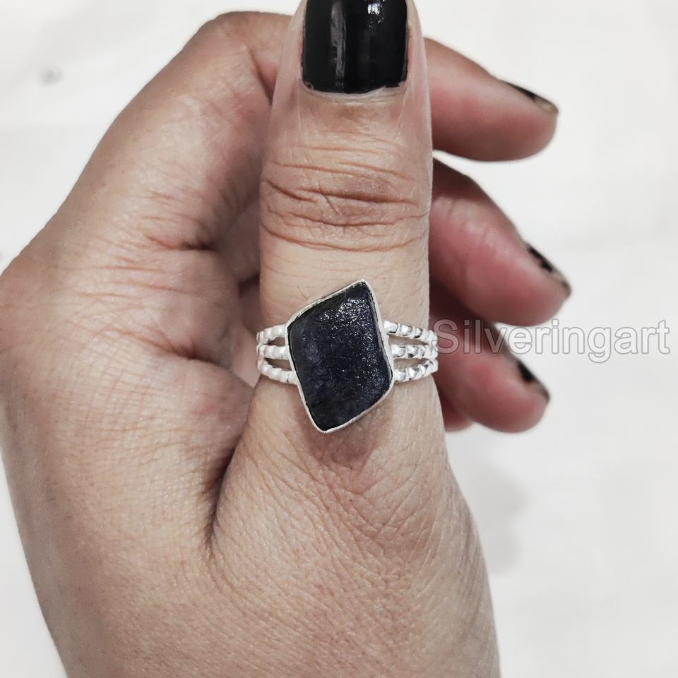 เครื่องประดับหินหยาบสำหรับผู้หญิงแหวนแซฟไฟร์พลอยแซฟไฟร์พลอยสีฟ้าจากธรรมชาติสำหรับ925