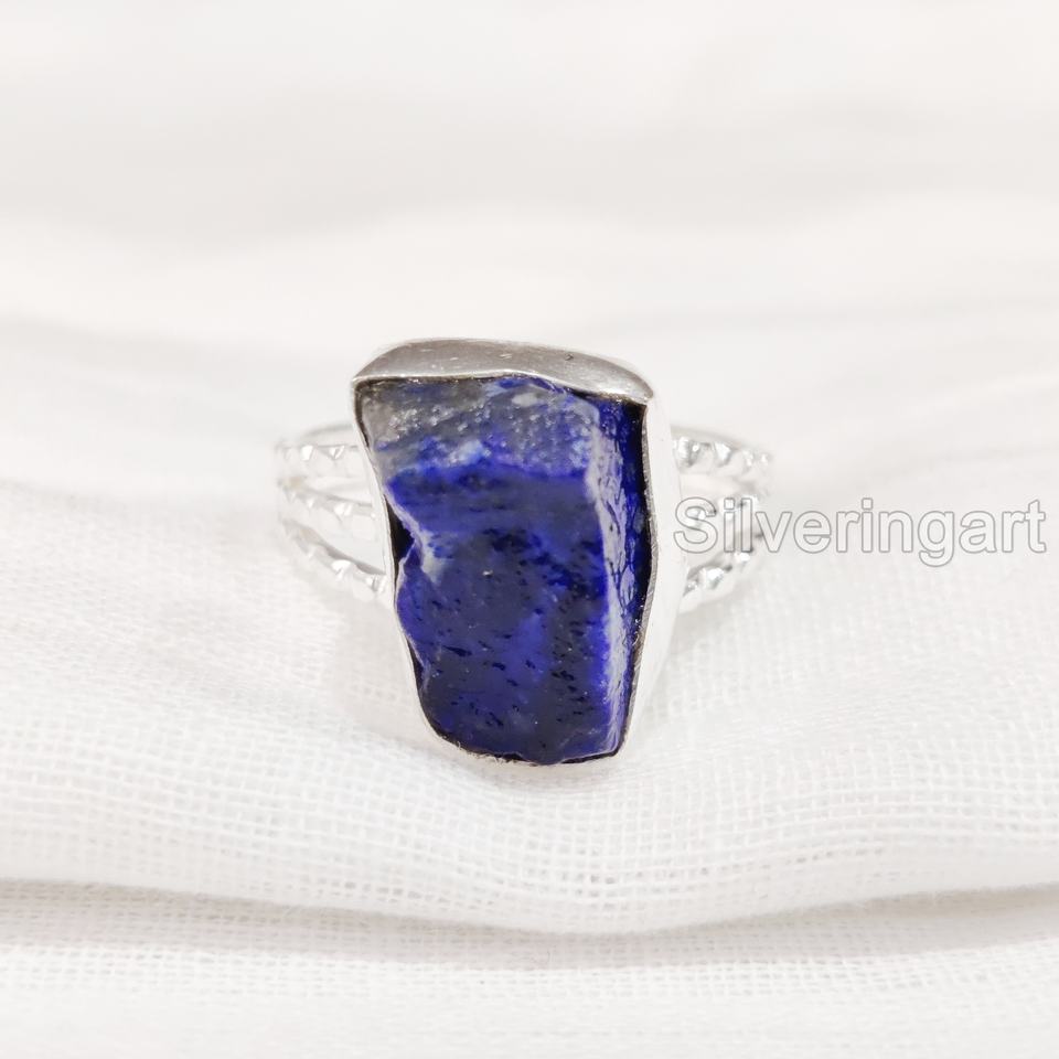 แหวนเงินแท้ 925 ประดับพลอยลาพิส ลาซูลีดิบธรรมชาติ ลายสามจุด สำหรับผู้หญิง เหมาะสำหรับงานแต่งงานและคริสต์มาส