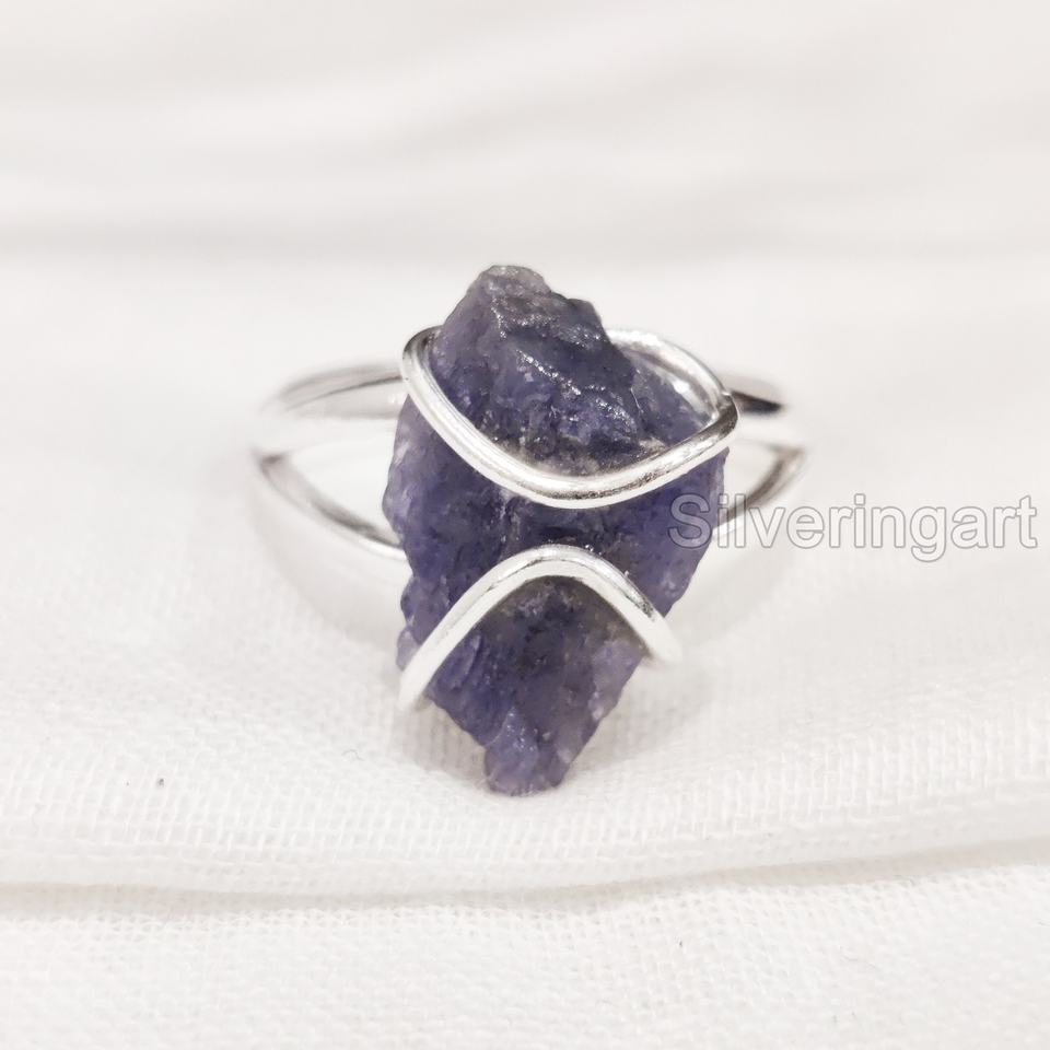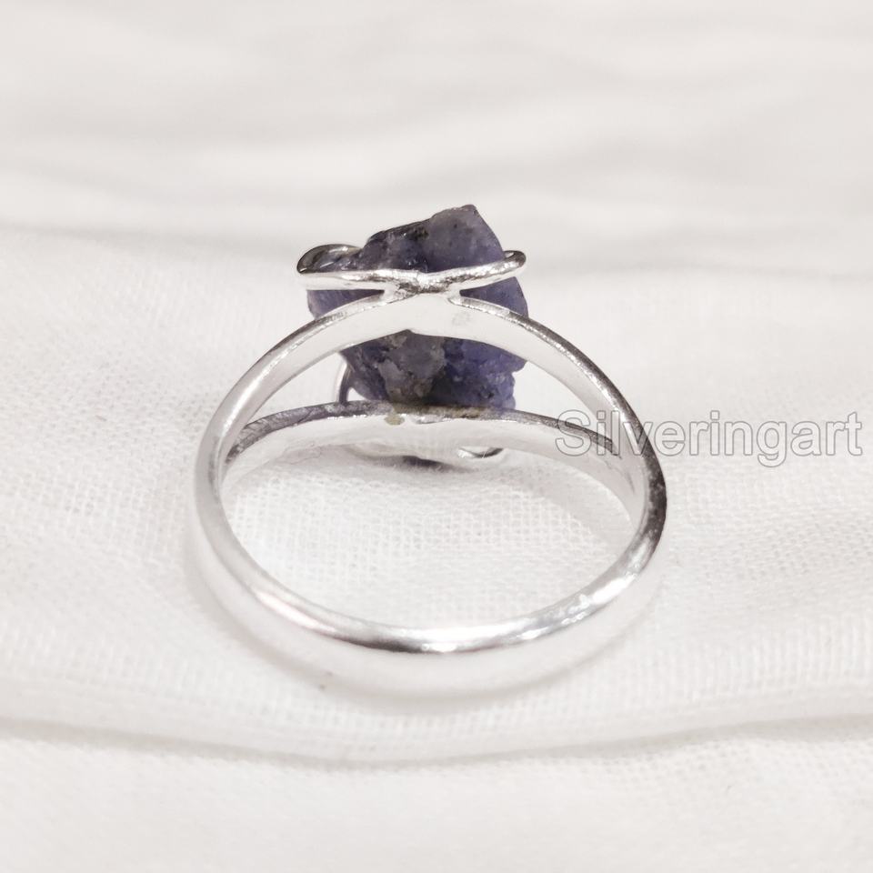 เครื่องประดับหินหยาบแหวนผู้หญิงแหวนธรรมชาติปรับได้พลอย tanzanite วงลวดวันเกิด925แหวนเงินสเตอร์ลิง