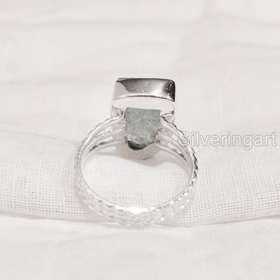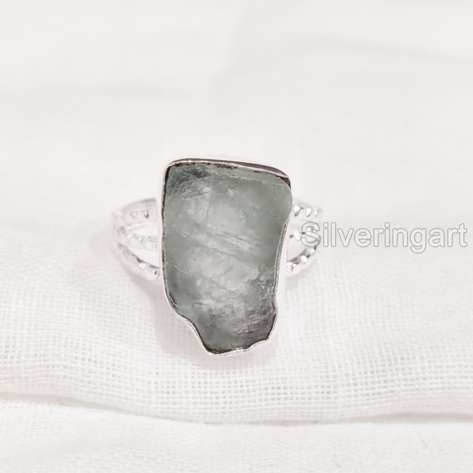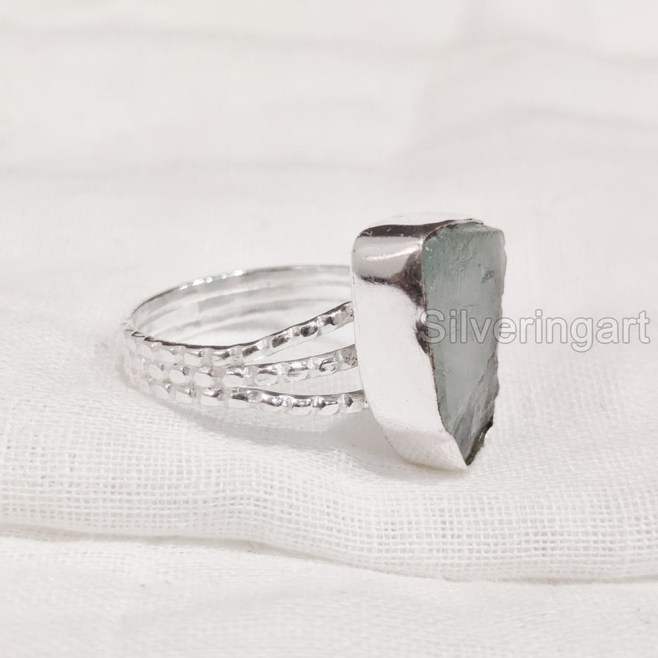 เครื่องประดับหินหยาบแหวนสตรีแหวนพลอยสีฟ้าแบบปรับได้ตามธรรมชาติสำหรับเดือนมีนาคมพลอยได้รับการรับรองจากแบรนด์แหวนเงินสเตอร์ลิง925
