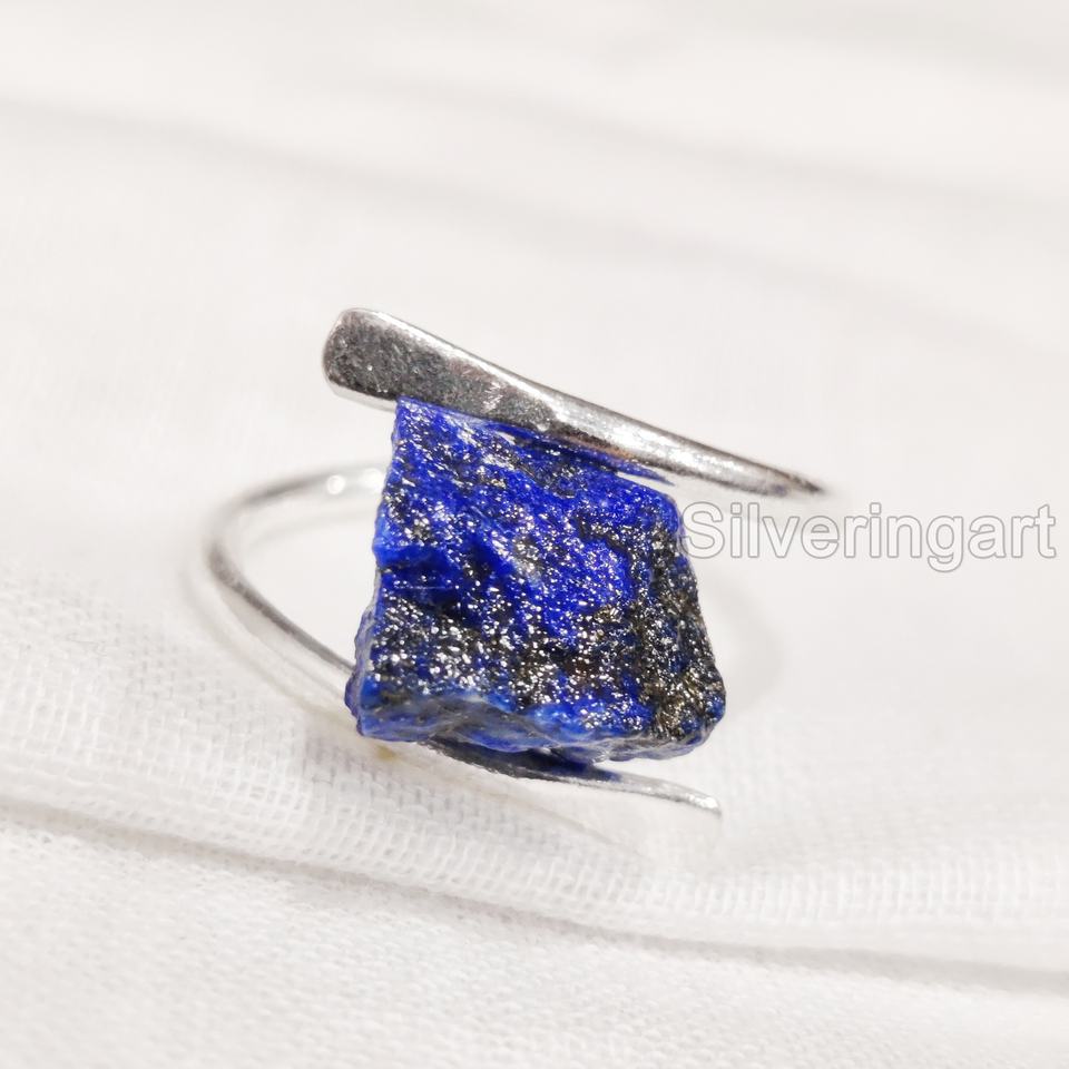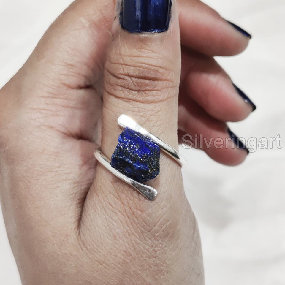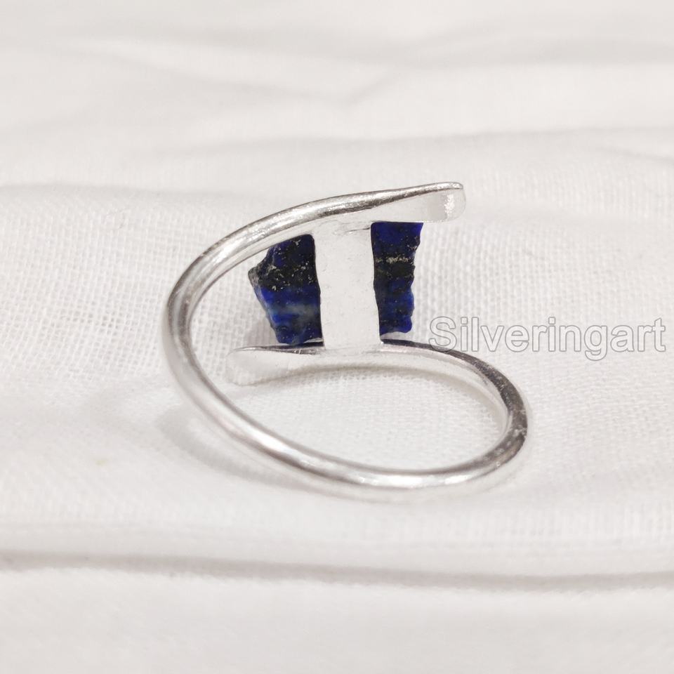 แหวนผู้หญิงประดับพลอยลาพิส ลาซูลีดิบธรรมชาติ รูปทรงกากบาท แหวนเงินแท้ 925 สำหรับคริสต์มาส