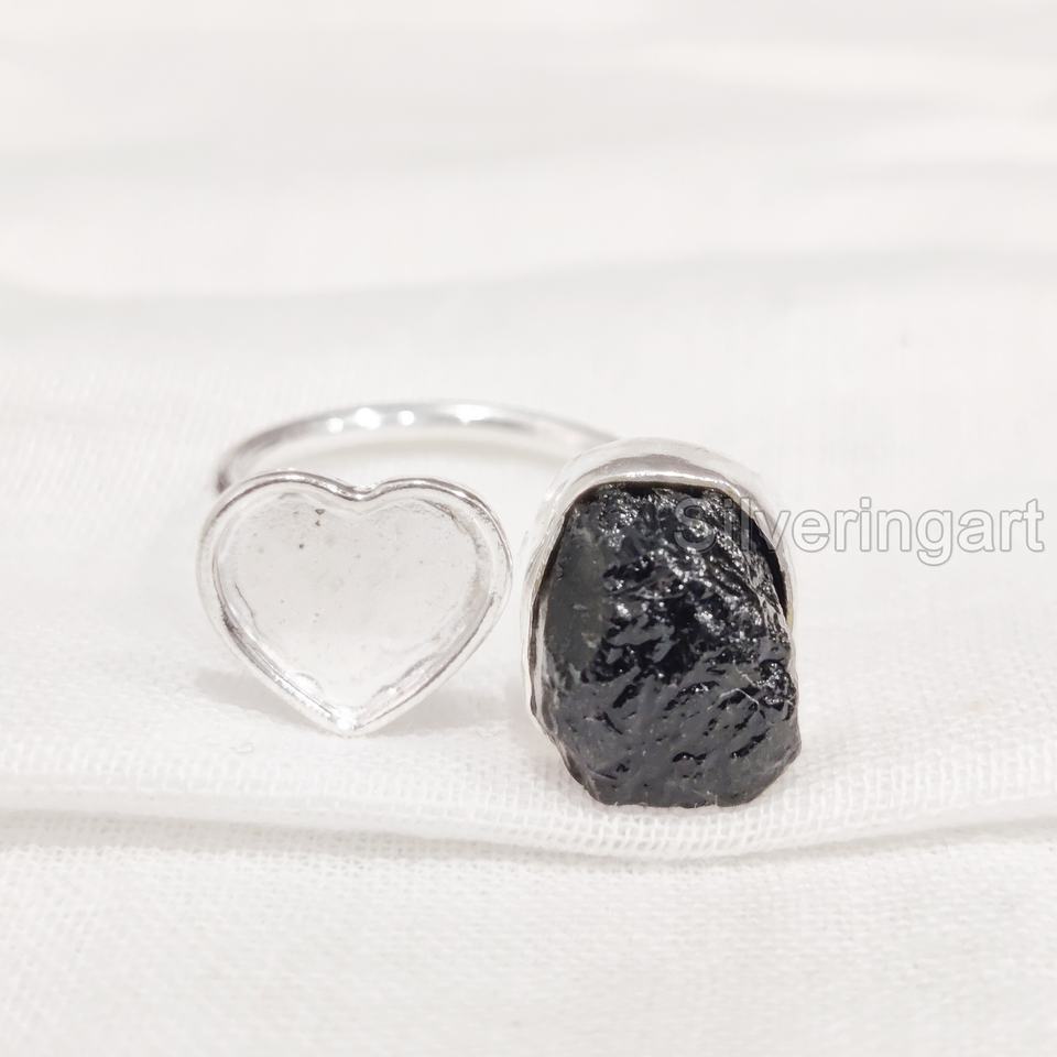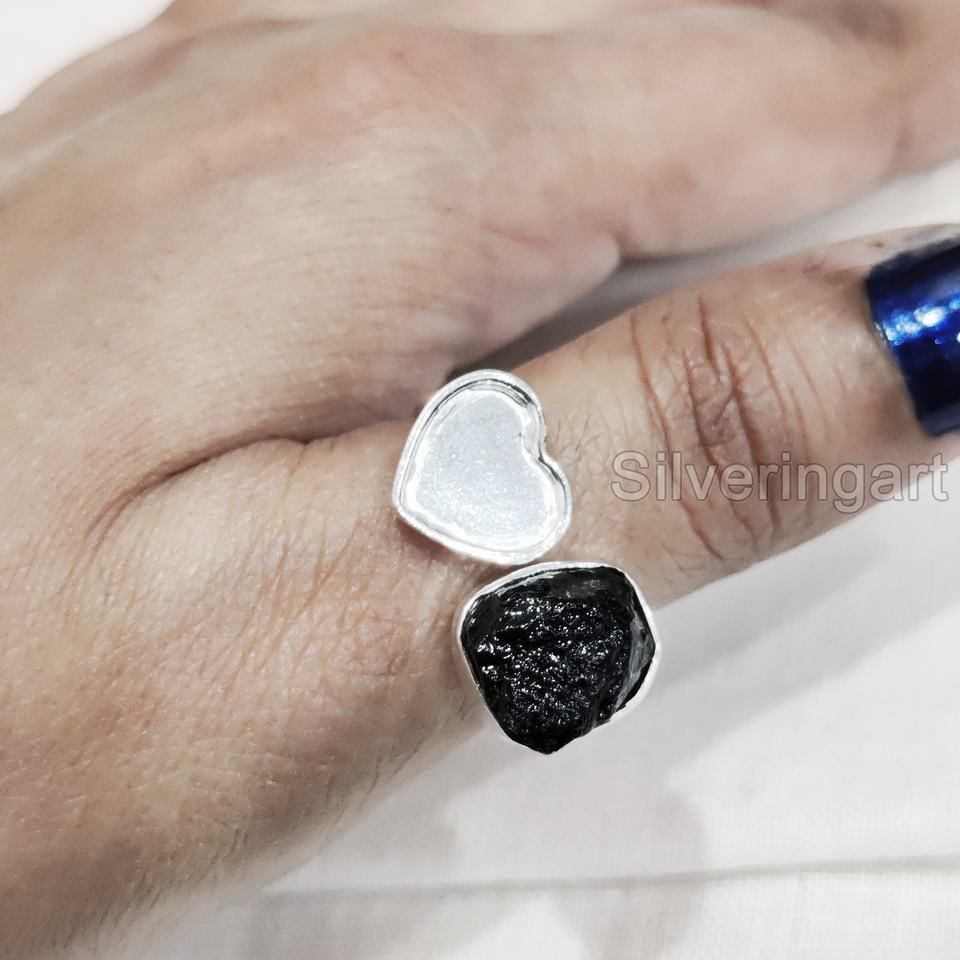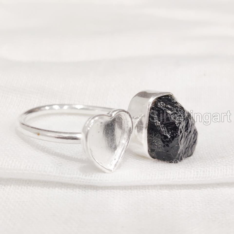 เครื่องประดับหินหยาบสำหรับผู้หญิงแหวนพลอยทัวร์มาลีนธรรมชาติสีดำบริสุทธิ์แหวนหัวใจสำหรับ925แหวนเงินสเตอร์ลิง