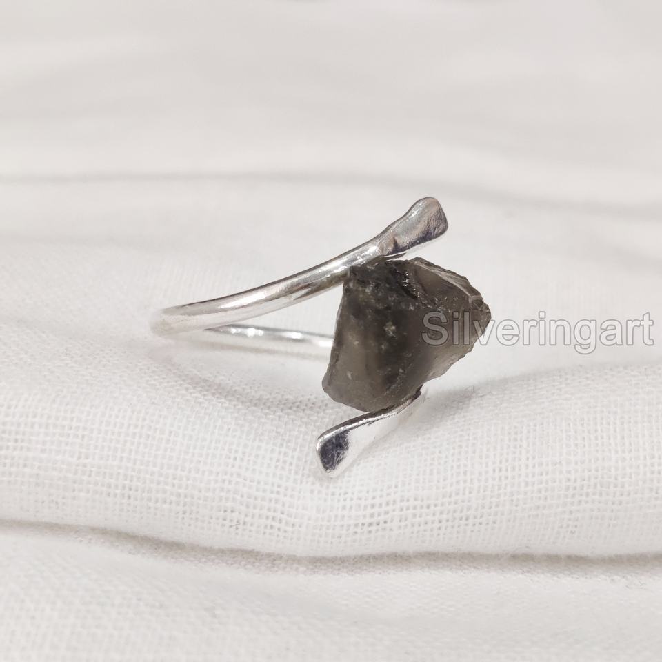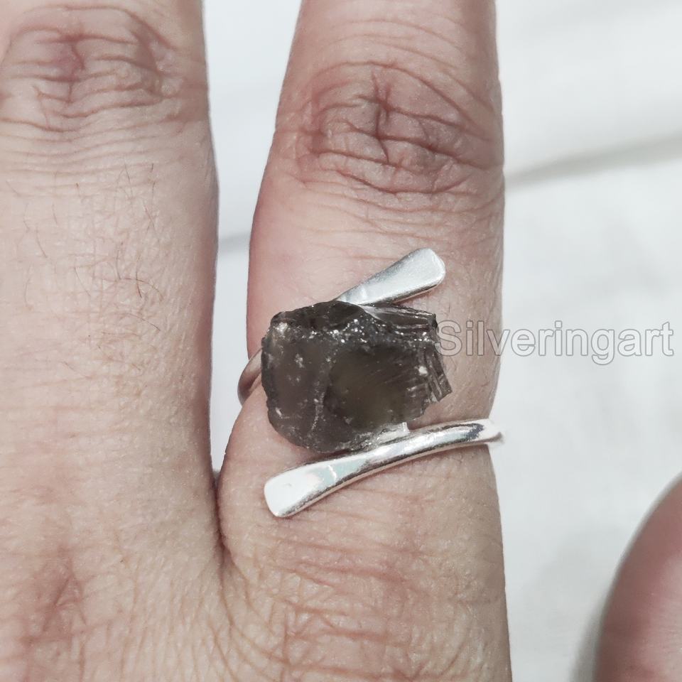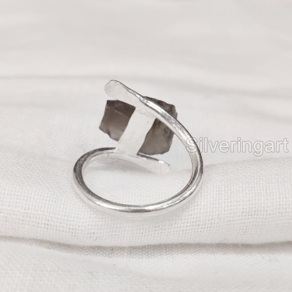 เครื่องประดับหินหยาบสำหรับผู้หญิงแหวนเงินแท้จากแร่ควอทซ์สโมควอตซ์อัญมณีสำหรับ925แบบทำมือแหวนเงินสเตอร์ลิง