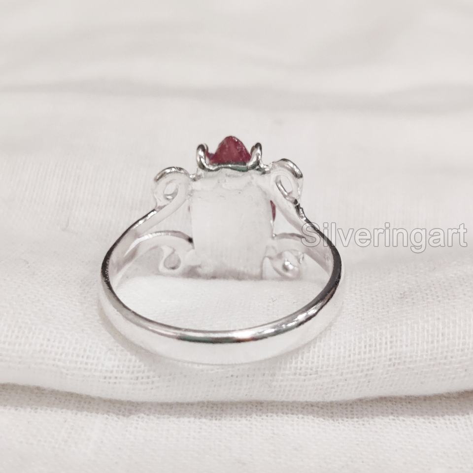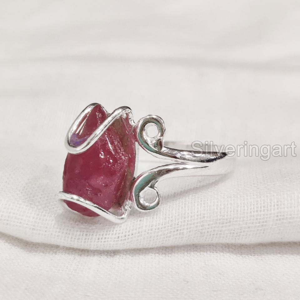แหวนหินดิบประดับทับทิมธรรมชาติสำหรับผู้หญิง แหวนเงินแท้ 925 สไตล์ฮิปปี้ ประดับพลอยประจำเดือนกรกฎาคม