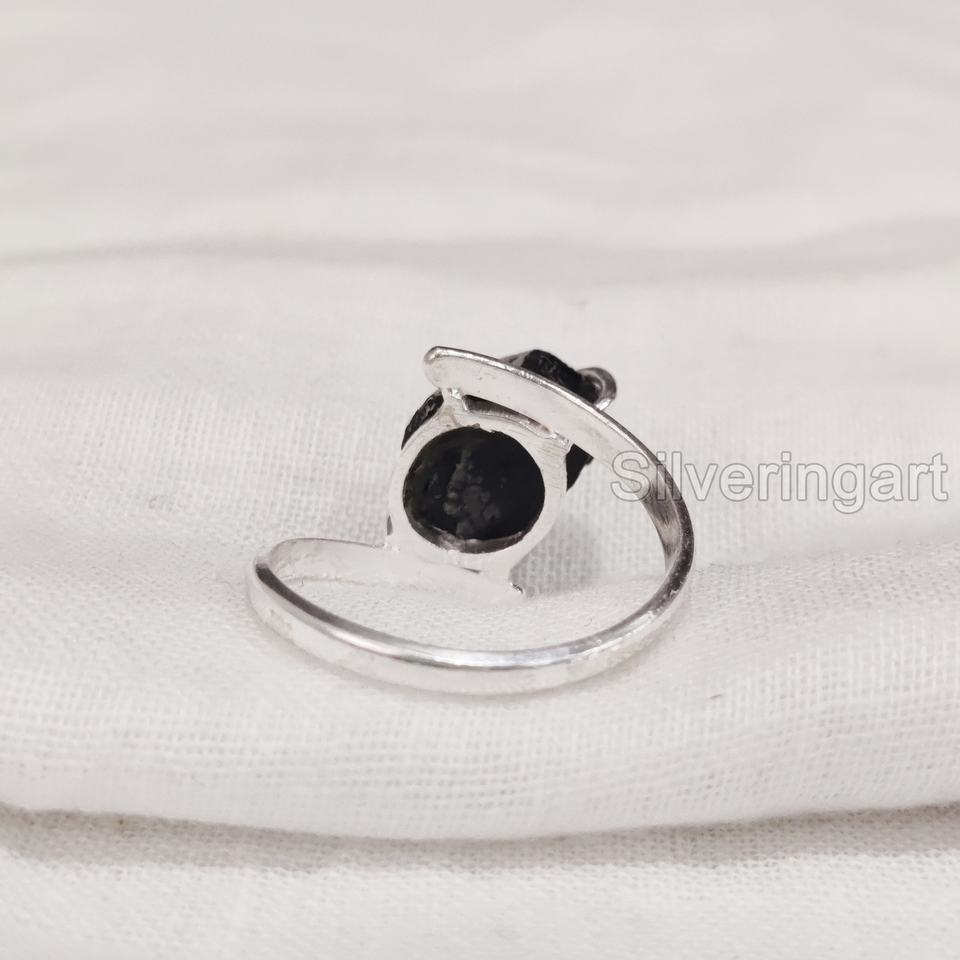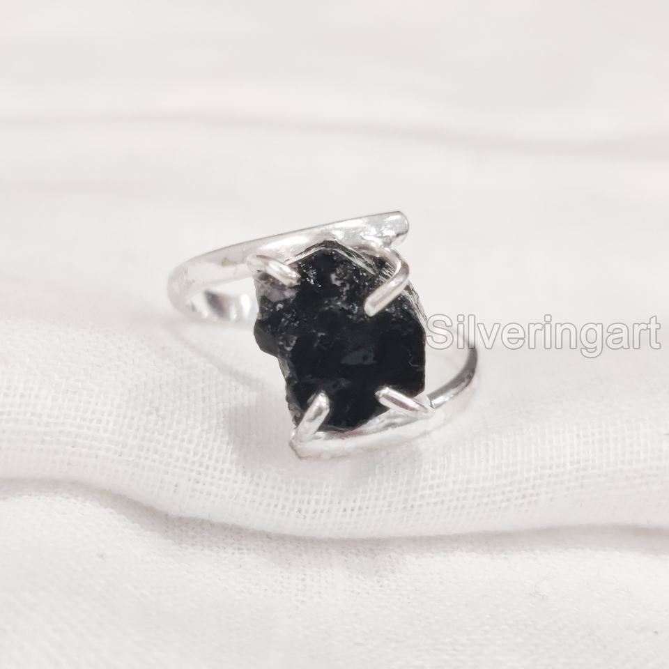 เครื่องประดับหินหยาบแหวนสำหรับผู้หญิงแหวนพลอยทัวร์มาลีนธรรมชาติสีดำสำหรับ925แหวนเงินสเตอร์ลิง