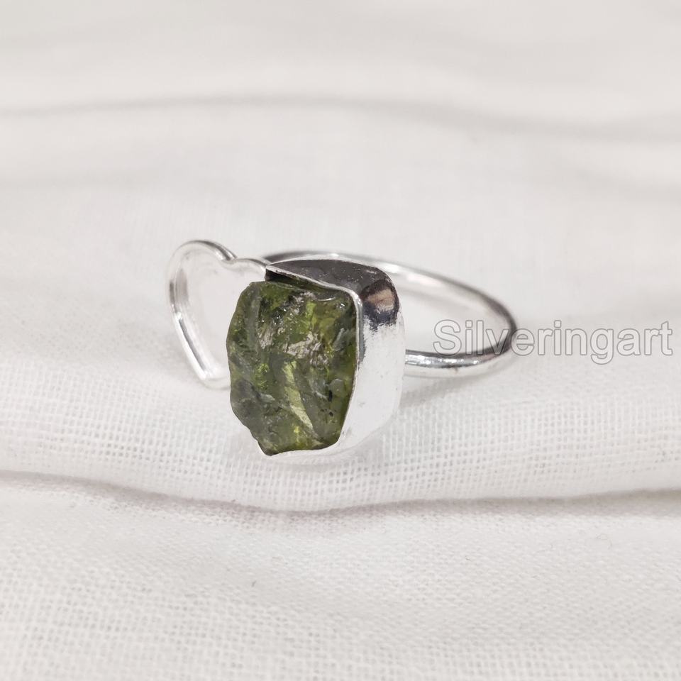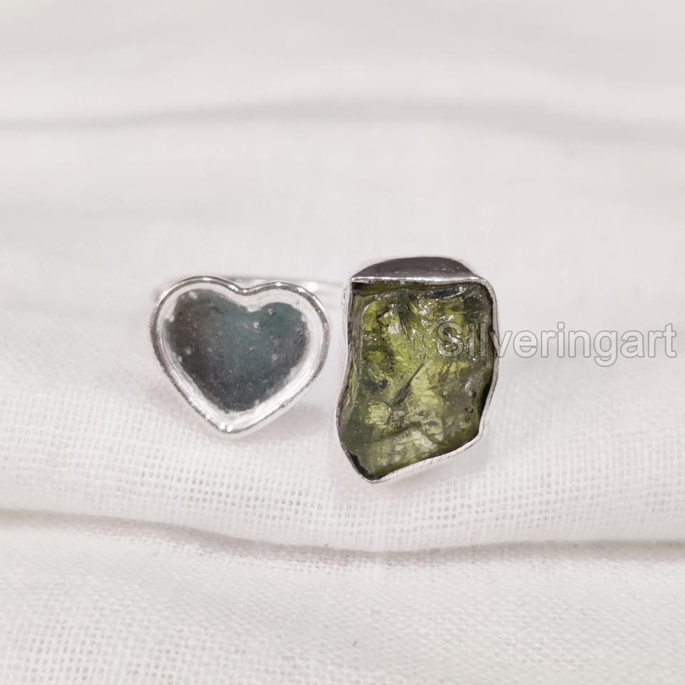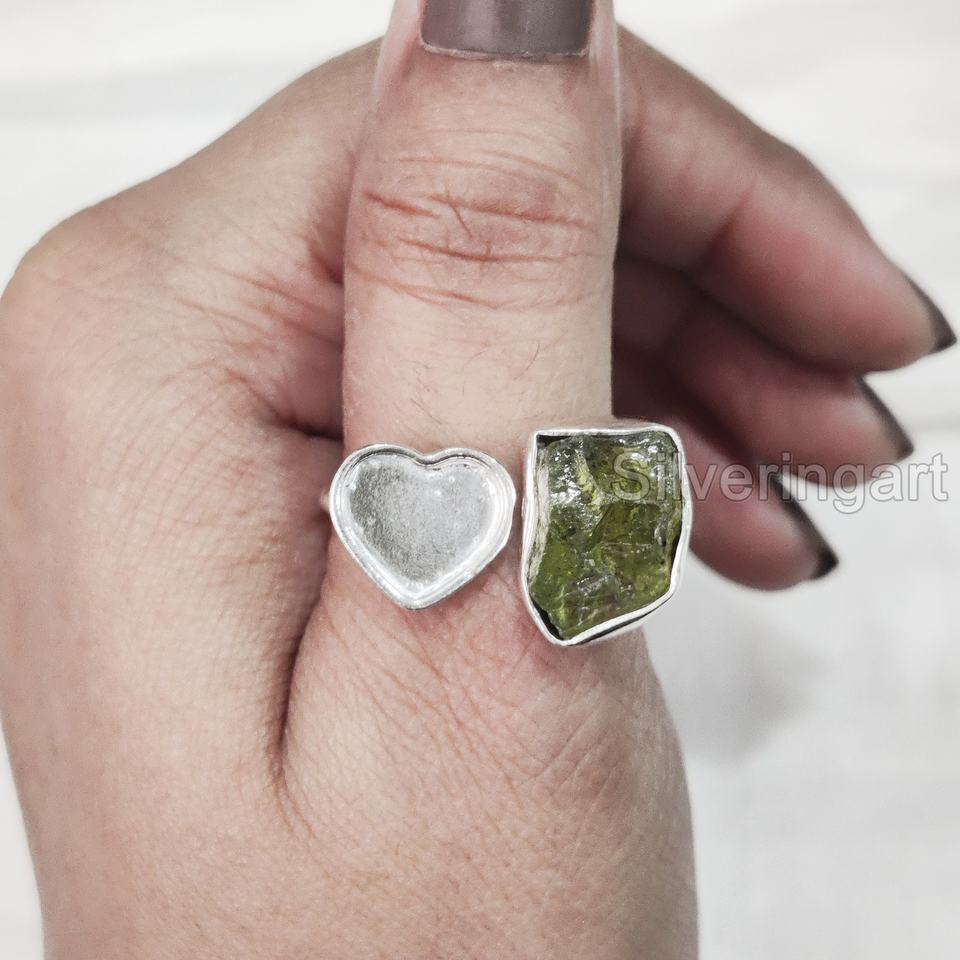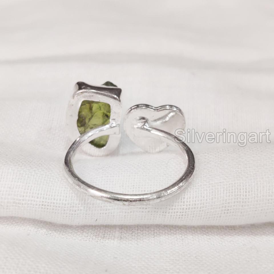 เครื่องประดับหินหยาบสำหรับผู้หญิงแหวนพลอยเพอริดอทแท้สำหรับผู้หญิงแหวนรูปหัวใจแบบปรับได้สำหรับ925แหวนเงินสเตอร์ลิง