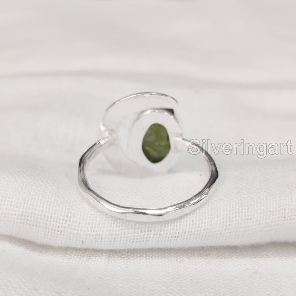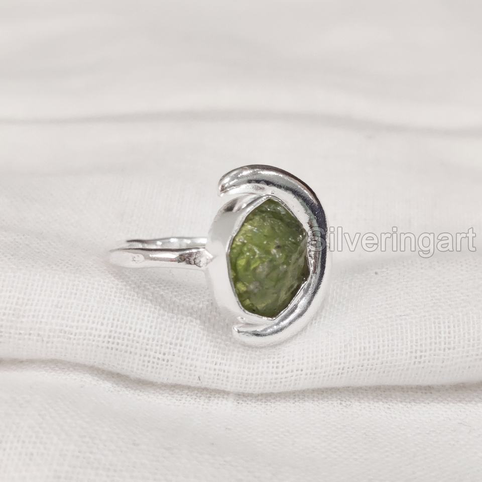 แหวนเงินแท้ 925 รูปพระจันทร์เสี้ยว ประดับพลอยเพอริดอทดิบธรรมชาติ สำหรับผู้หญิง แหวนประจำเดือนเกิดเดือนสิงหาคม ปรับขนาดได้