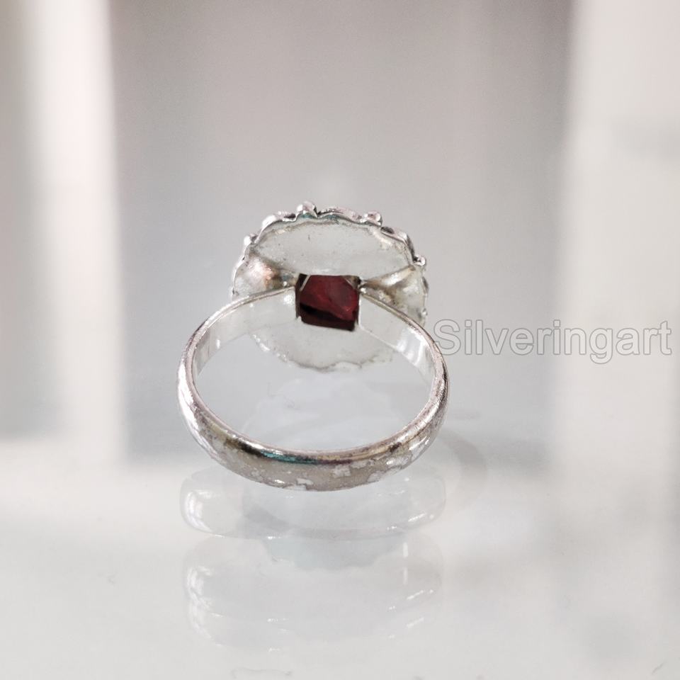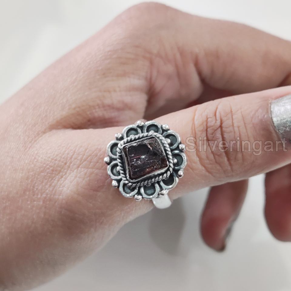 เครื่องประดับหินหยาบแหวนโกเมนธรรมชาติสำหรับผู้หญิงอัญมณีดิบ janubary birthstone Bohemian Ring เครื่องประดับ925แหวนเงินสเตอร์ลิง