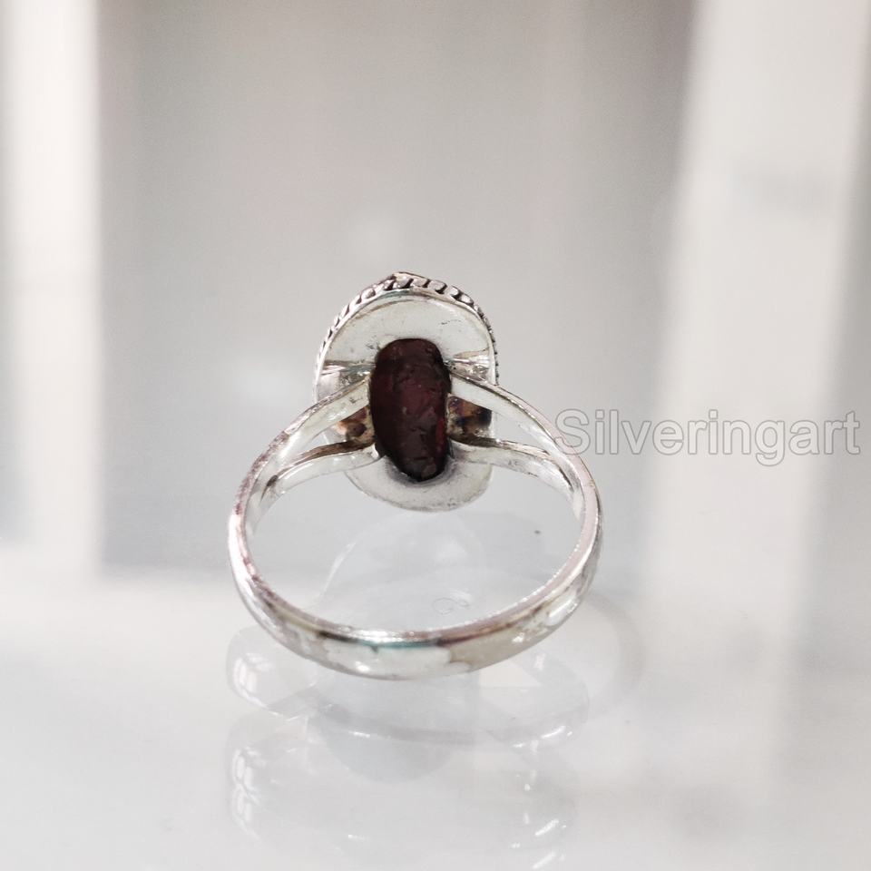เครื่องประดับหินหยาบแหวนโกเมนธรรมชาติสำหรับผู้หญิงอัญมณีดิบ janubary birthstone Bohemian Ring เครื่องประดับ925แหวนเงินสเตอร์ลิง