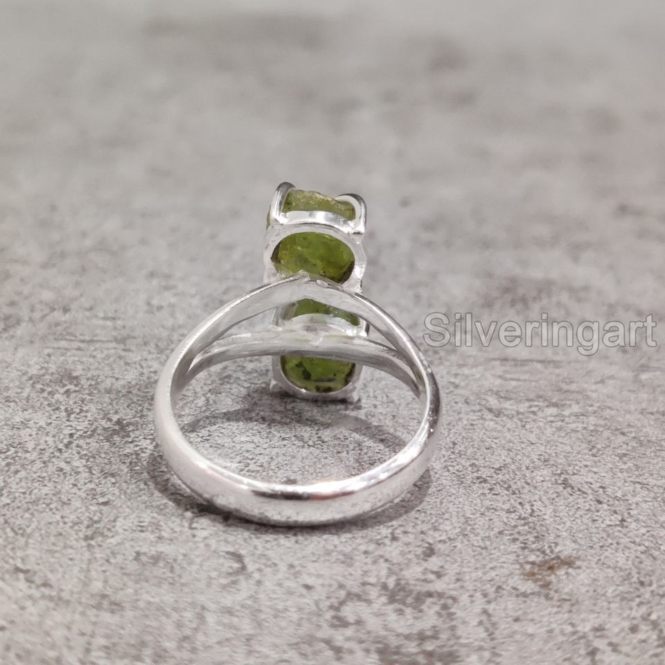 เครื่องประดับหินหยาบสำหรับผู้หญิงแหวนพลอยเพอริโดแบบธรรมชาติสำหรับวันครบรอบปีพลอยสองชั้น925แหวนเงินสเตอร์ลิง