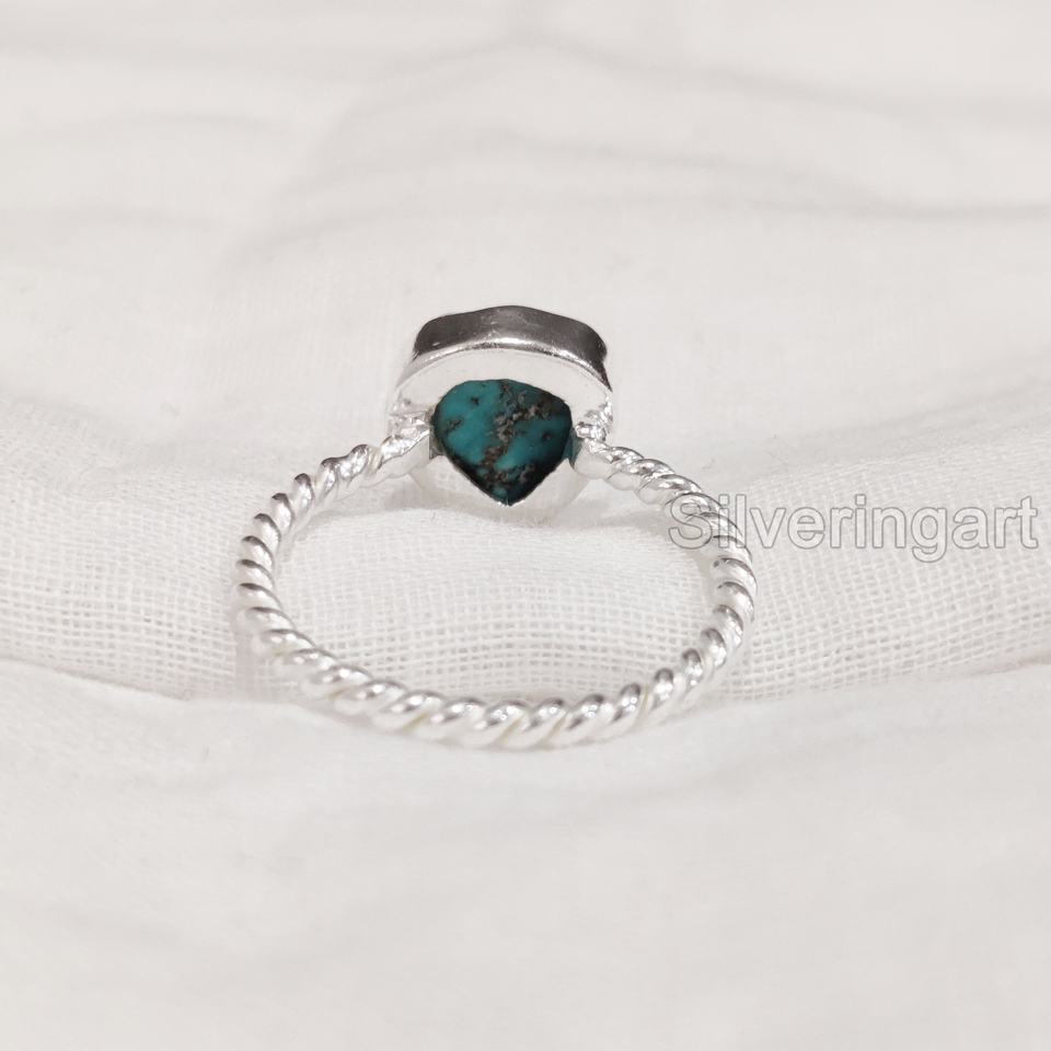 เครื่องประดับหินหยาบสำหรับผู้หญิงแหวนพลอยเทอร์ควอยส์จากธรรมชาติ December birthstone twand twand Twisted 925แต่งงานแหวนเงินสเตอร์ลิง
