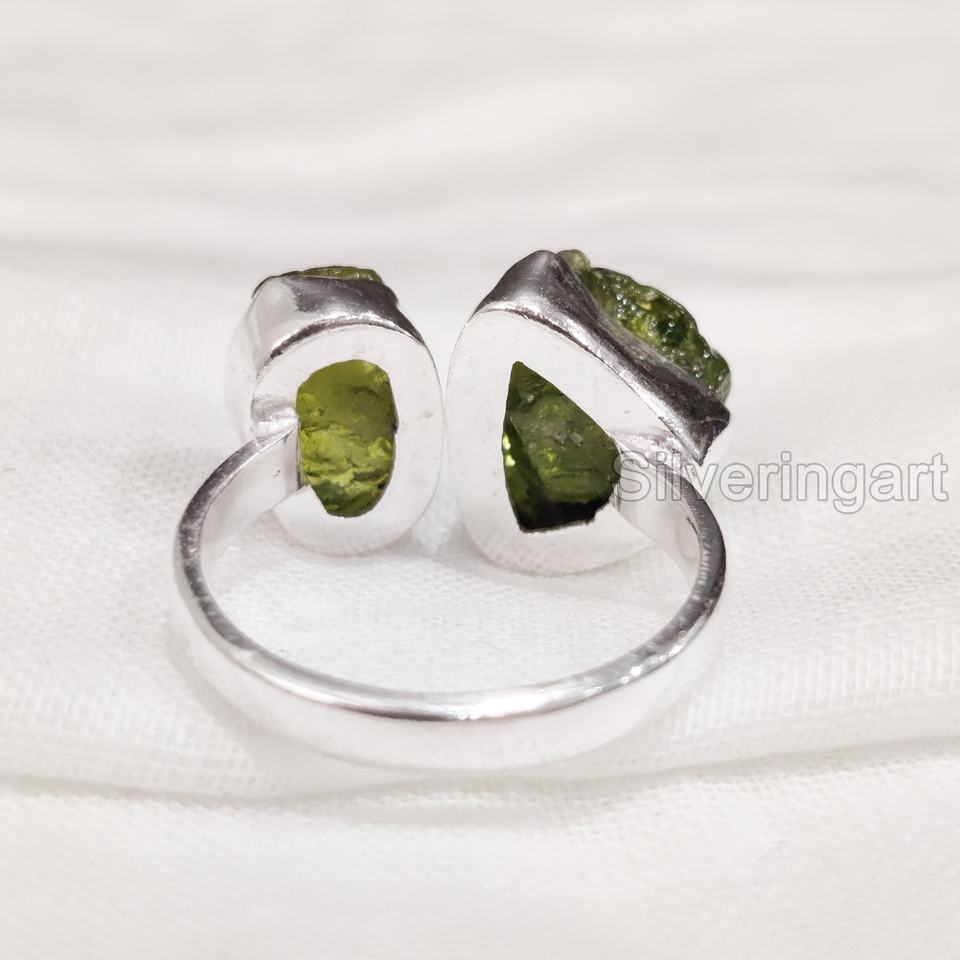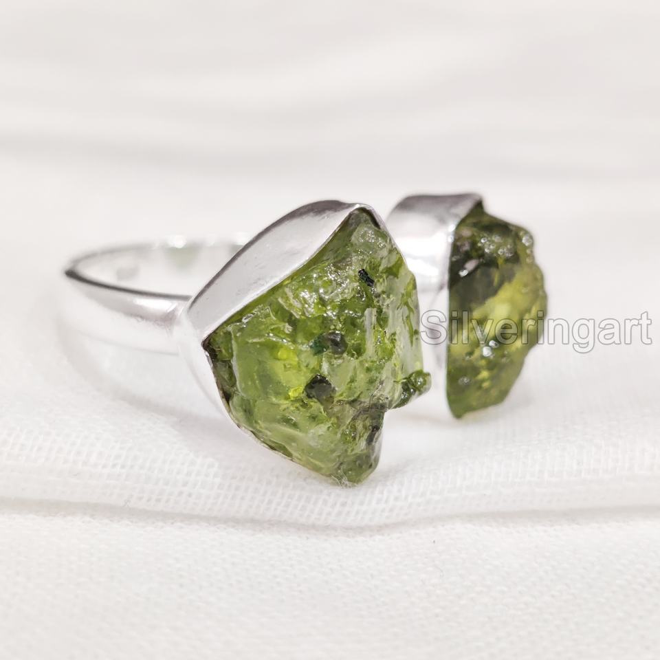 แหวนเงินแท้ 925 ประดับพลอยเพอริดอทดิบธรรมชาติ 2 เม็ด สำหรับผู้หญิง ของขวัญวันครบรอบ เนื่องจากพลอยประจำเดือนเกิดเดือนสิงหาคม