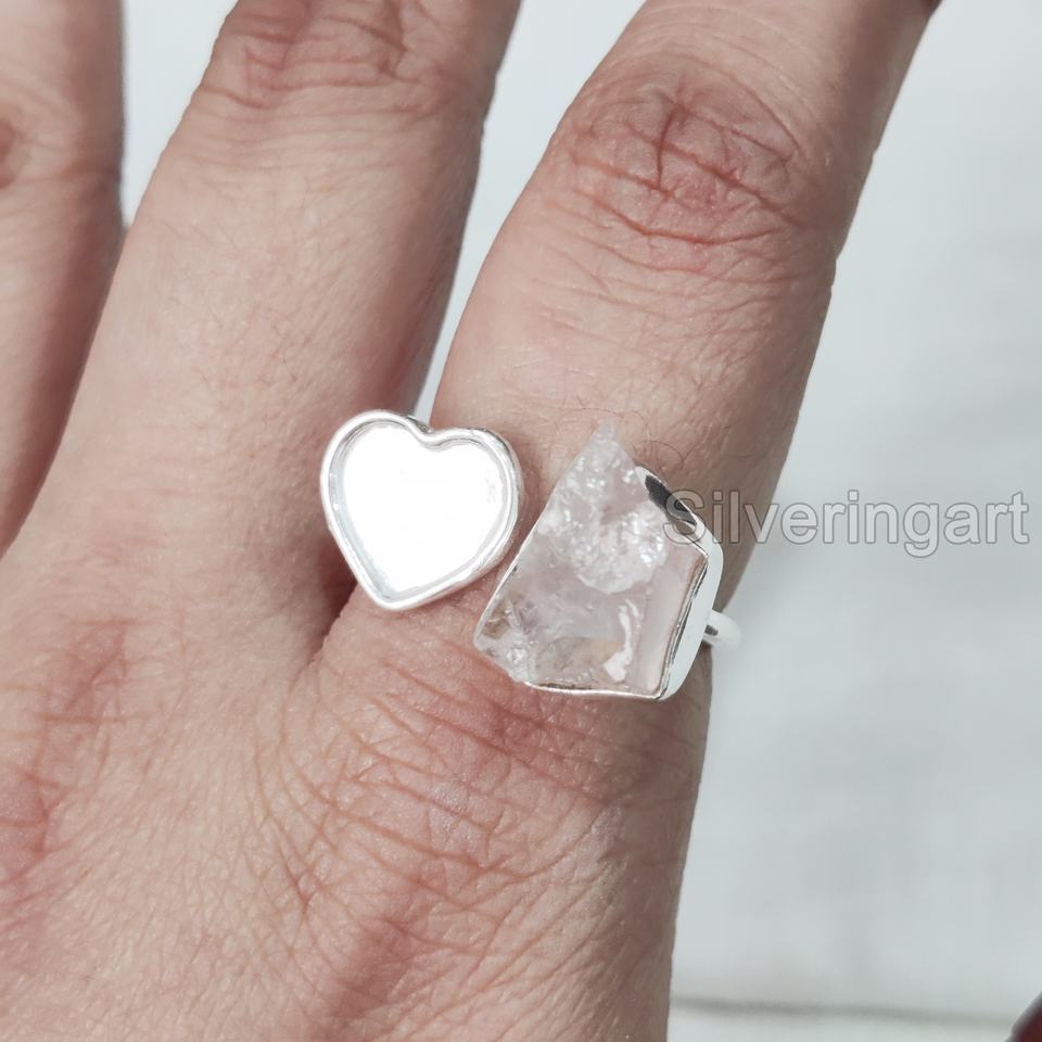 เครื่องประดับหินหยาบสำหรับผู้หญิงแหวนสำหรับทำจากแร่ควอตซ์พลอยอัญมณีอัญมณี April หินวันเกิดแหวนปรับขนาดได้925แหวนเงินสเตอร์ลิง