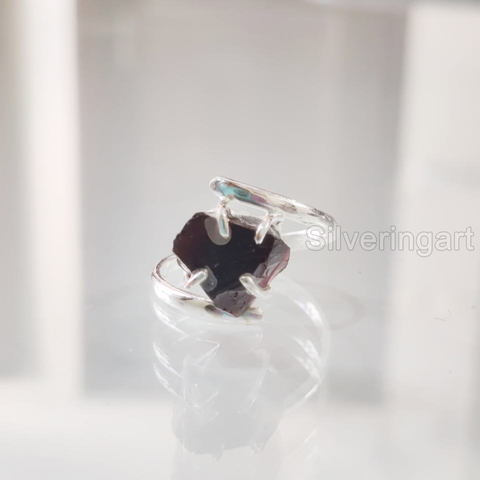 เครื่องประดับหินหยาบผู้หญิงแหวนโกเมนธรรมชาติพลอยดิบ January birthary CROSS PRONG band เครื่องประดับ925แหวนเงินสเตอร์ลิง