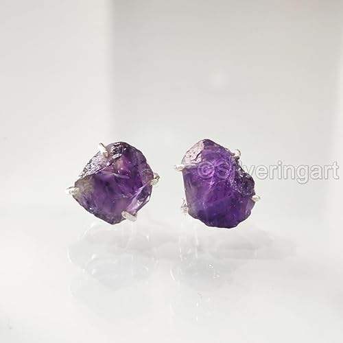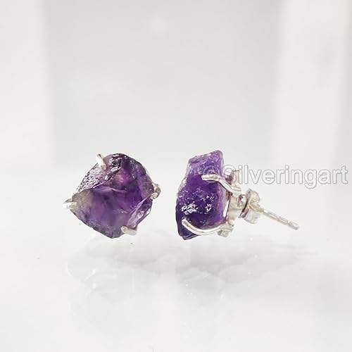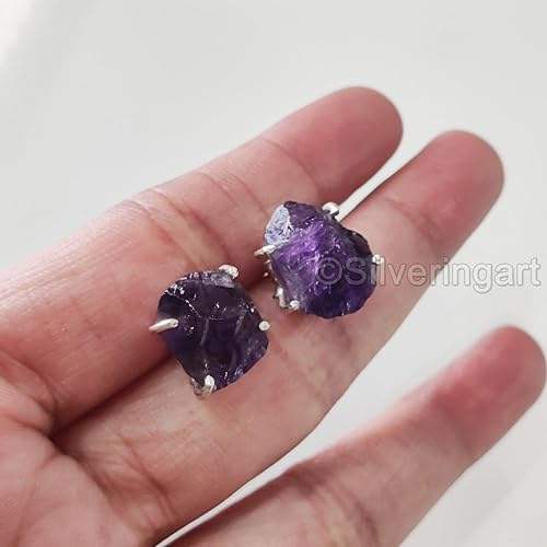 ชุดเครื่องประดับผู้หญิงแบบดิบ หินอเมทิสต์ธรรมชาติ หินประจำเดือนกุมภาพันธ์ ของขวัญคริสต์มาส เครื่องประดับทำมือ แหวนเงินแท้ 925