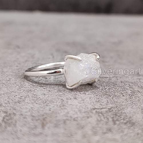 แหวนเงินแท้ 925 ประดับพลอยมูนสโตนสีรุ้งธรรมชาติ สำหรับผู้หญิง งานแฮนด์เมด หินประจำเดือนมิถุนายน