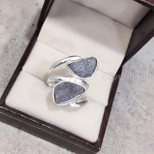 แหวนเงินแท้ 925 ประดับพลอยแทนซาไนต์ธรรมชาติ สำหรับผู้หญิง ของขวัญวันเกิดเดือนธันวาคม ของขวัญคริสต์มาส งานแฮนด์เมด