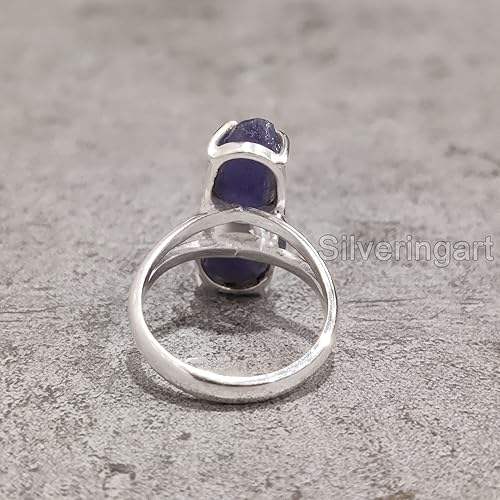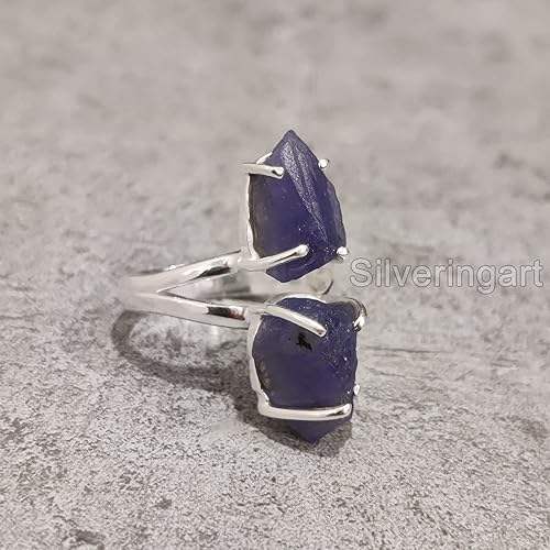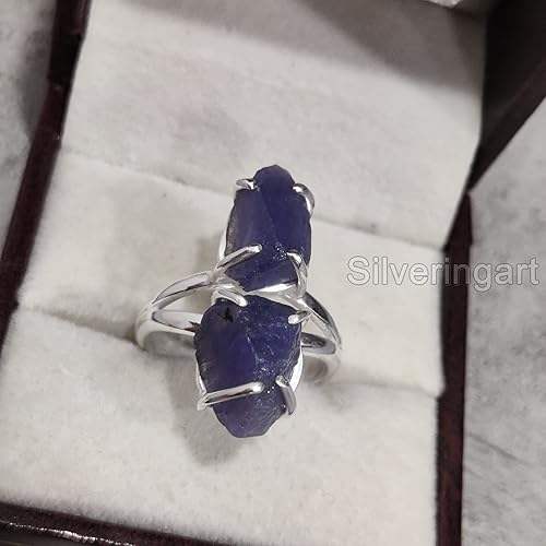 แหวนเงินแท้ 925 ประดับแทนซาไนต์ธรรมชาติ แหวนคู่ สำหรับผู้หญิง ของขวัญคริสต์มาส ทำด้วยมือ