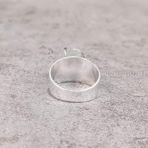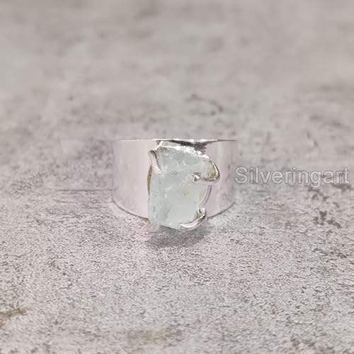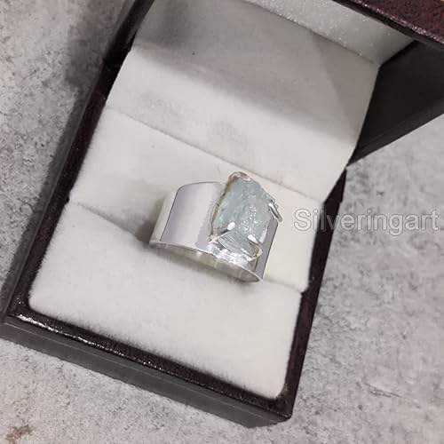 แหวนเงินแท้ 925 ประดับพลอยอะความารีนธรรมชาติ สำหรับผู้หญิง ดีไซน์วงกว้าง งานแฮนด์เมด เหมาะเป็นของขวัญคริสต์มาส ประจำเดือนมีนาคม