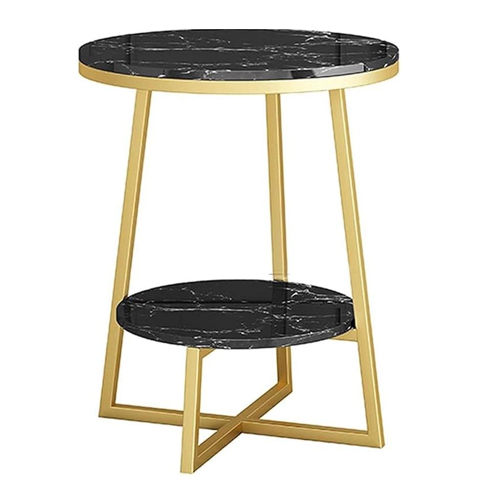 โต๊ะกาแฟทรงกลม2ชั้นเคลือบทองด้วยไม้หินอ่อนทนทานดีไซน์ที่เป็นเอกลักษณ์