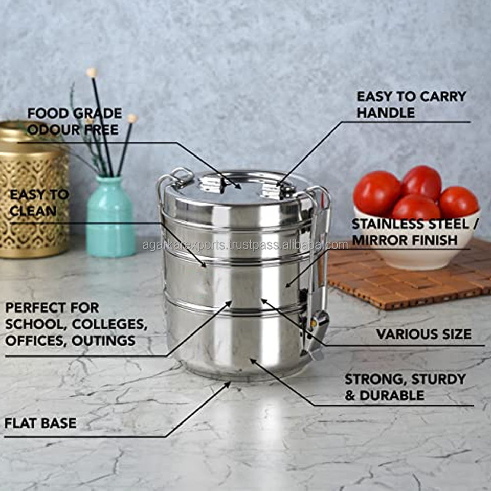 กล่องข้าวสแตนเลสสองชั้น 3 ช่อง พร้อมหูหิ้ว ป้องกันการรั่วซึม ความจุ 1.5 ลิตร ใช้กับเครื่องล้างจานได้ น้ำหนักเบา